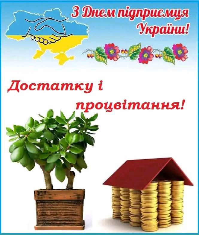 Щиро вітаю вас із професійним святом — Днем підприємця України! Цей день є визнанням вашої важливої ролі у розбудові нашої країни. Ваша щоденна праця, невичерпна ініціативність та наполегливість є справжньою основою сталого розвитку як нашої громади, так і держави загалом. Саме ви створюєте нові робочі місця, забезпечуєте надходження до бюджету, підтримуєте місцеву економіку, сміливо впроваджуєте сучасні інноваційні ідеї та невпинно рухаєтеся вперед, долаючи будь-які перешкоди, навіть у найскладніші часи. Діяльність підприємців є рушійною силою прогресу.