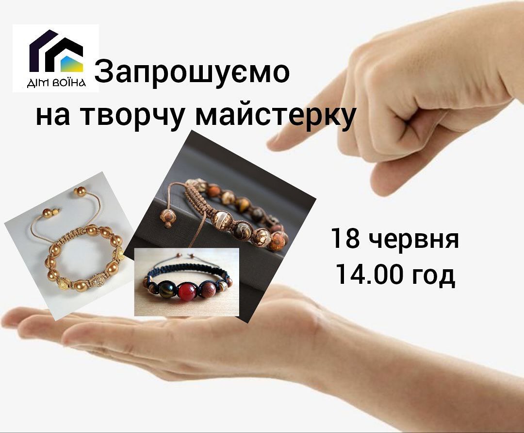 Шановні родини зниклих безвісти та полонених Захисників України! Запрошуємо вас до затишного простору «Дім Воїна» на особливу творчу майстерку, де разом плестимемо браслети шамбала з намистин. Ця зустріч – це можливість відволіктися від тривог, провести час у теплій атмосфері єднання та створити власноруч красивий оберіг. «Дім Воїна» прагне надати підтримку тим, хто її найбільше потребує, організовуючи заходи, що сприяють психологічному відновленню та емоційному розвантаженню.
