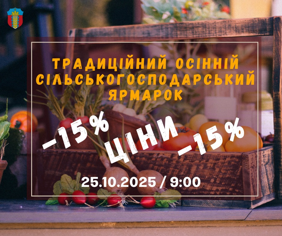 Запрошуємо вас відвідати щорічний осінній сільськогосподарський ярмарок, який відбудеться цієї суботи, 25 жовтня, о 9:00. Це чудова нагода придбати свіжі та якісні продукти від місцевих фермерів за надзвичайно вигідними цінами. Ми пишаємося тим, що можемо запропонувати вам продукцію, вирощену з любов’ю та турботою на українській землі.