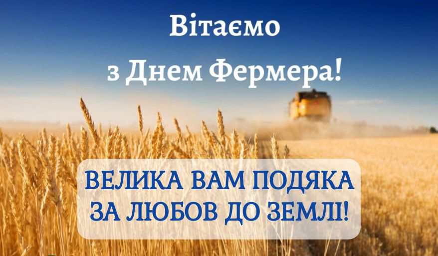 З нагоди Дня фермера бажаємо вам натхнення та сил для нових звершень в аграрному секторі. Нехай ваша праця завжди буде цінною та шанованою. Фермерство – це основа нашої економіки, і ми пишаємося тим, що маємо таких працьовитих та відданих людей, як ви. Разом ми зможемо відбудувати нашу країну та зробити її процвітаючою!