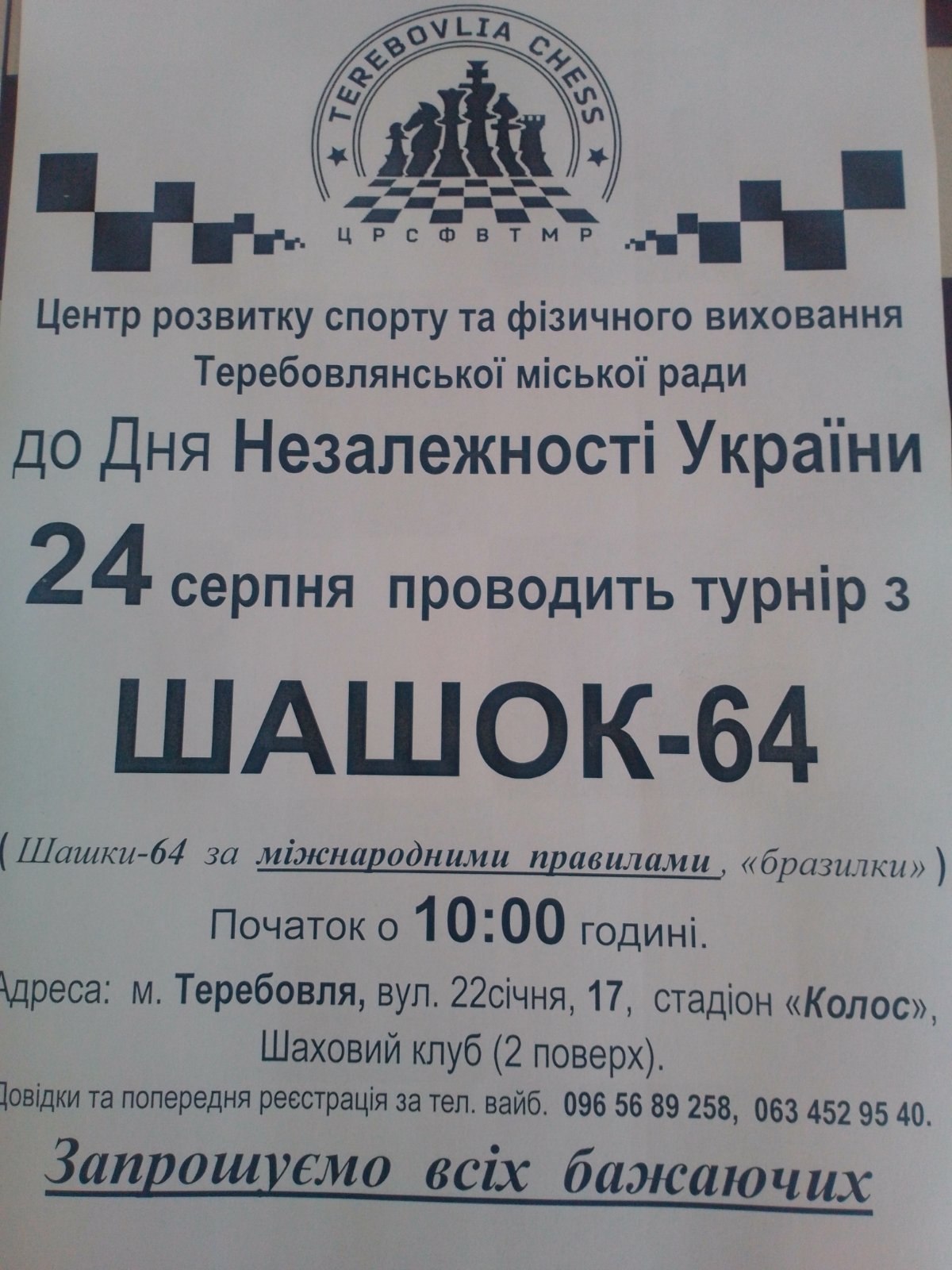 Долучайтеся до нашого шашкового свята в Теребовлі! Це чудова можливість відсвяткувати День Незалежності України, проявивши свої інтелектуальні здібності та спортивний дух. Чекаємо на вас!