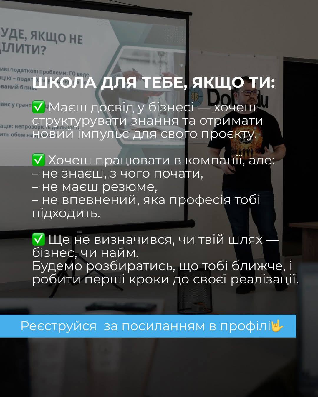 ✅ Планує або вже розпочав власну справу. Ви отримаєте можливість структурувати свої знання, глибоко розібратися у ключових бізнес-процесах, отримати професійну менторську підтримку, розробити чіткий бізнес-план та обмінятися досвідом з успішними підприємцями. Це стане потужним поштовхом для розвитку вашого проєкту.