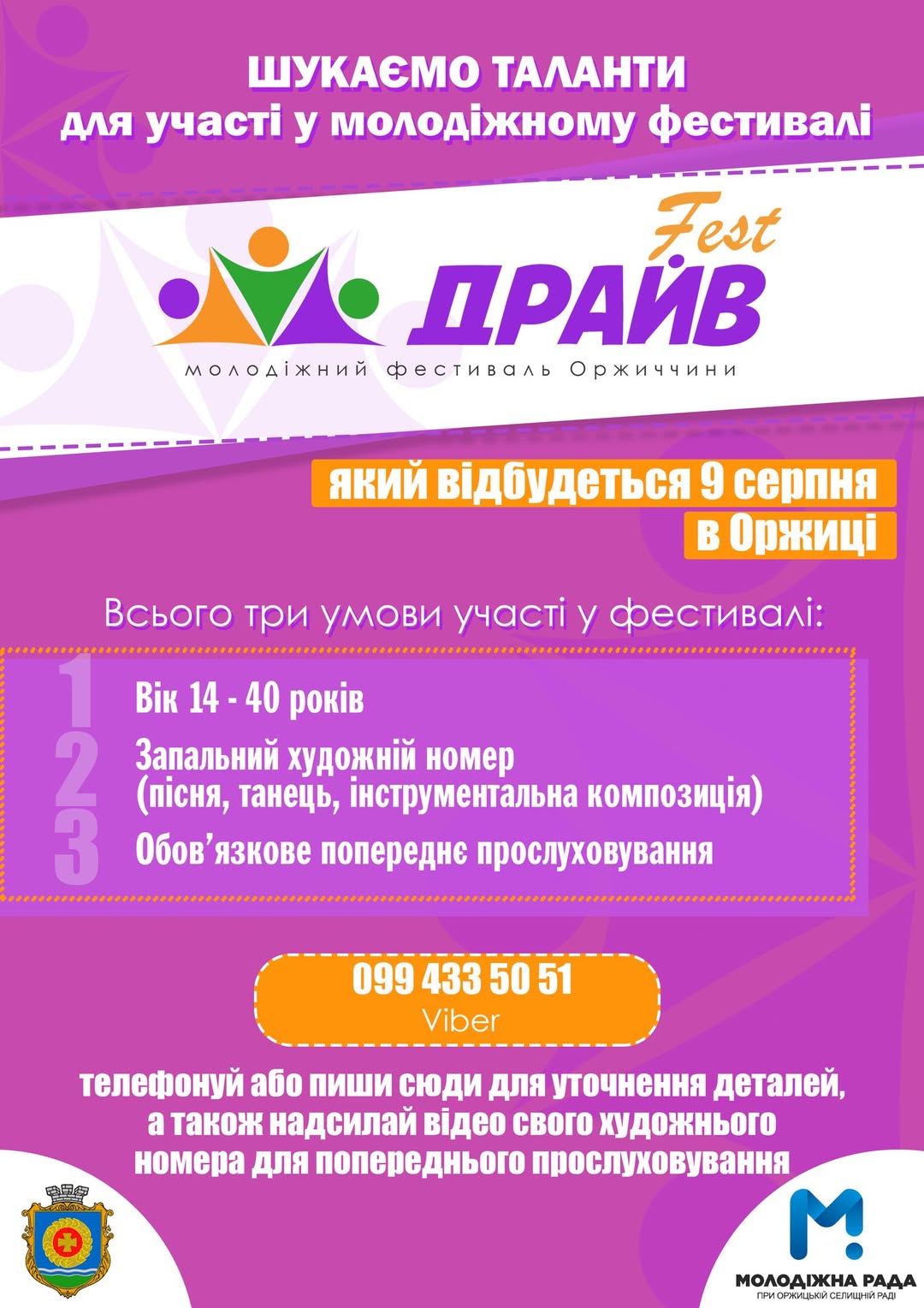 Оржиччина запрошує талановиту молодь на фестиваль “FestДрайв”!