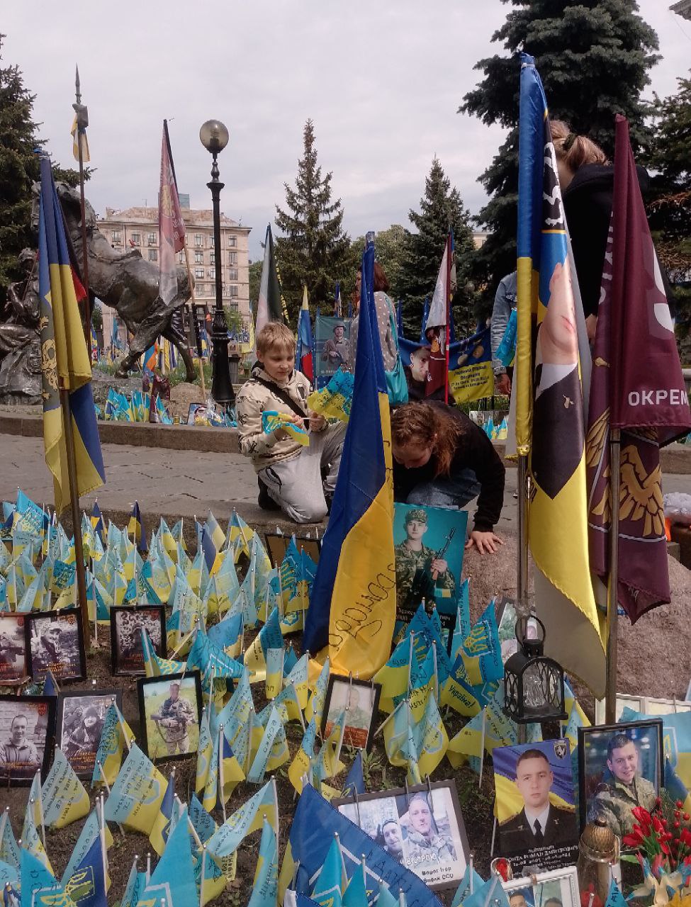 Ще влітку 2022 року, на Майдані Незалежності в Києві з’явився простір пам’яті, місце, де кожен може вшанувати подвиг загиблих героїв. На зелених газонах почали з’являтися синьо-жовті та червоно-чорні прапорці, як символ скорботи та вдячності. Ця ініціатива стала важливою складовою вшанування пам’яті тих, хто віддав своє життя за свободу України.