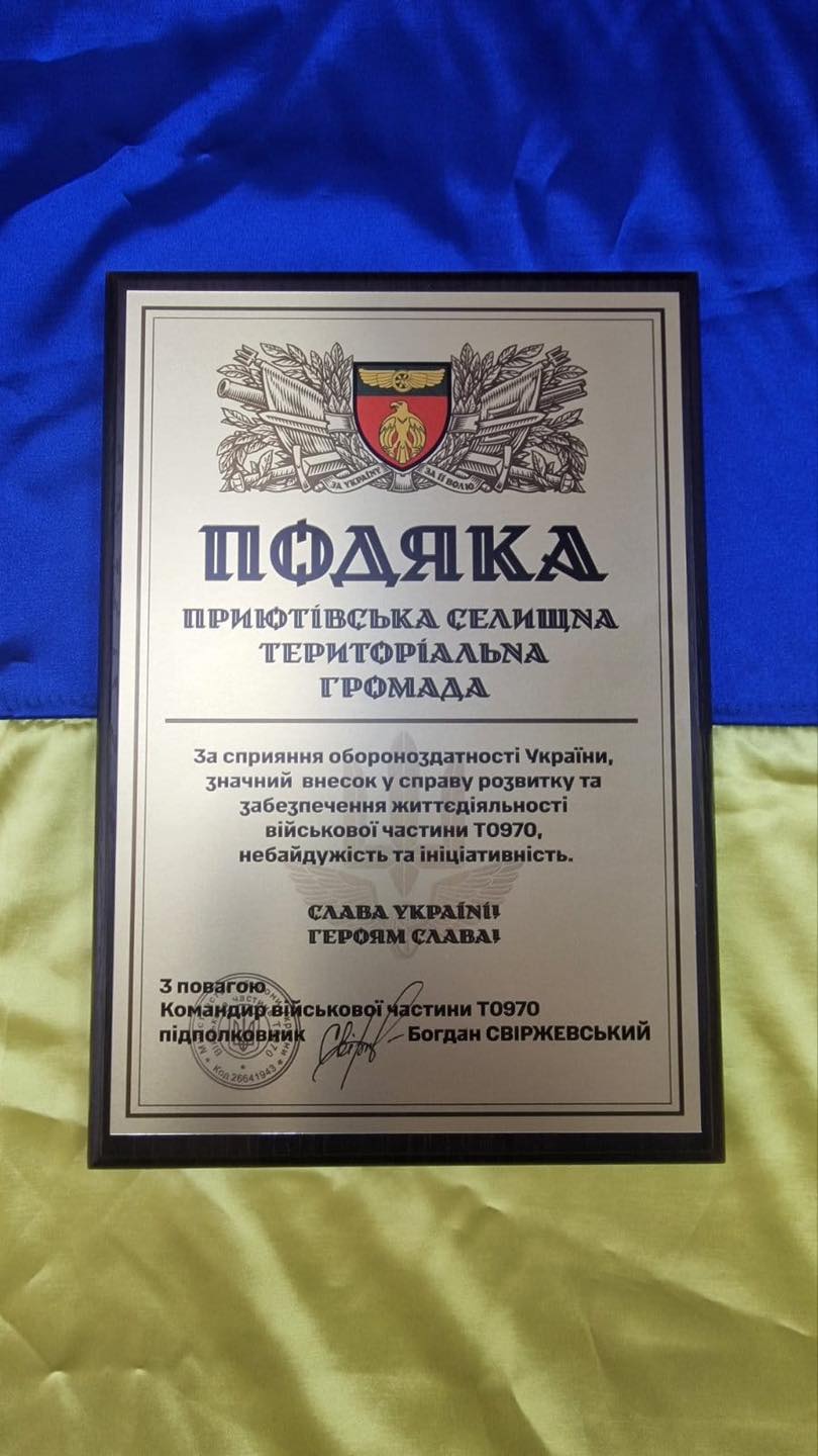 Ще один прояв вдячності та свідчення нашої спільної справи. Приютівська громада отримала чергову високу відзнаку від військового підрозділу, який є частиною Державної спеціальної служби транспорту. Ця відзнака вручена як визнання значного внеску громади у зміцнення обороноздатності країни, безперервну підтримку життєдіяльності військовослужбовців та постійну проактивність у допомозі. Такі подяки підкреслюють нашу колективну відповідальність і міцний зв’язок між тилом та фронтом. Ми мужньо тримаємо свій рубіж, надаючи всебічну підтримку тим, хто щоденно захищає нас. Наша допомога – це неоціненний внесок у загальну перемогу, що демонструє єдність українського народу.