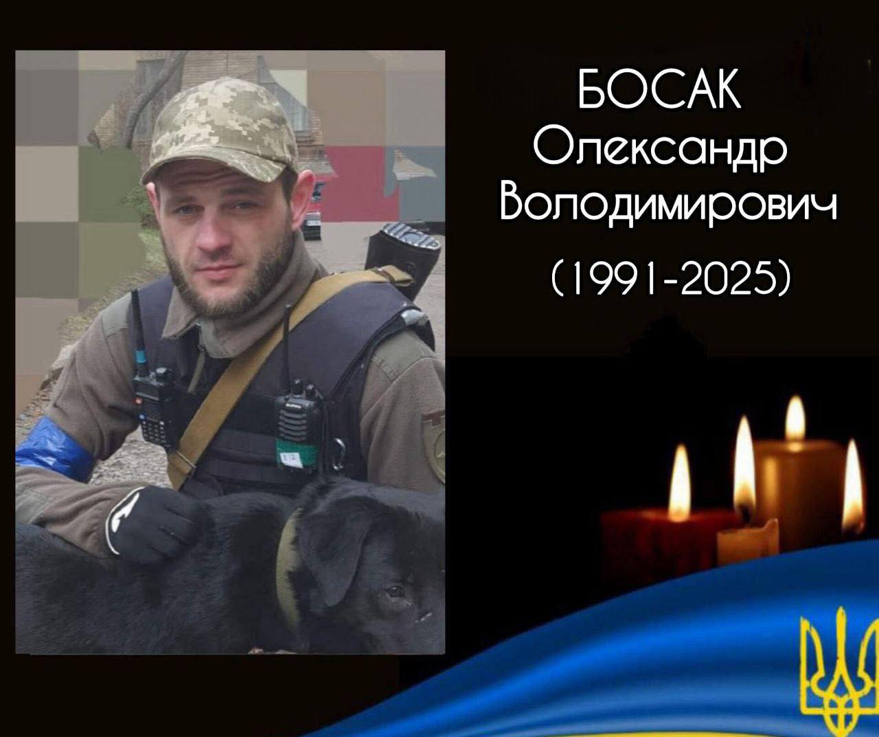 11 серпня в результаті трагічного випадку загинув військовослужбовець Збройних сил України, наш Захисник, БОСАК Олександр Володимирович, 1991 року народження.