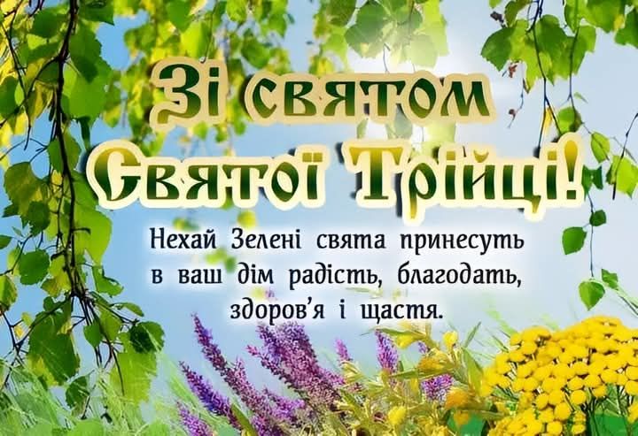 🌿Щиро вітаємо всіх із величним святом Святої Трійці! Нехай це світле свято Святої Трійці принесе у ваші родини мир, злагоду та добробут. Це день, коли ми об’єднуємося серцями, наповнюючи наші душі духовністю, любов’ю та великою надією на краще майбутнє. У цей особливий день, день Святої Трійці, ми бажаємо кожному українцю міцного здоров’я, невичерпної віри та сил для подолання будь-яких викликів, що стоять на нашому шляху.