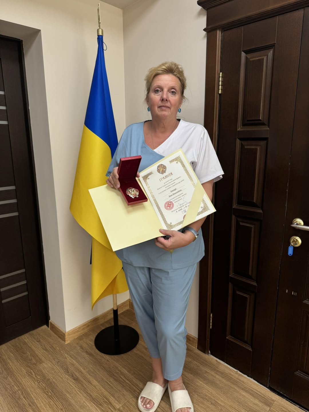 ✨ Особлива відзнака для завідуючої інсультного відділення Київської міської клінічної лікарні №4, розташованої в Солом’янському районі, Влащук Алли Миколаївни. Вона отримала Грамоту та відзнаку святого великомученика і цілителя Пантелеймона. Ця нагорода є свідченням її самовідданої праці, виняткового професіоналізму та глибокої турботи про здоров’я пацієнтів. 🕊️