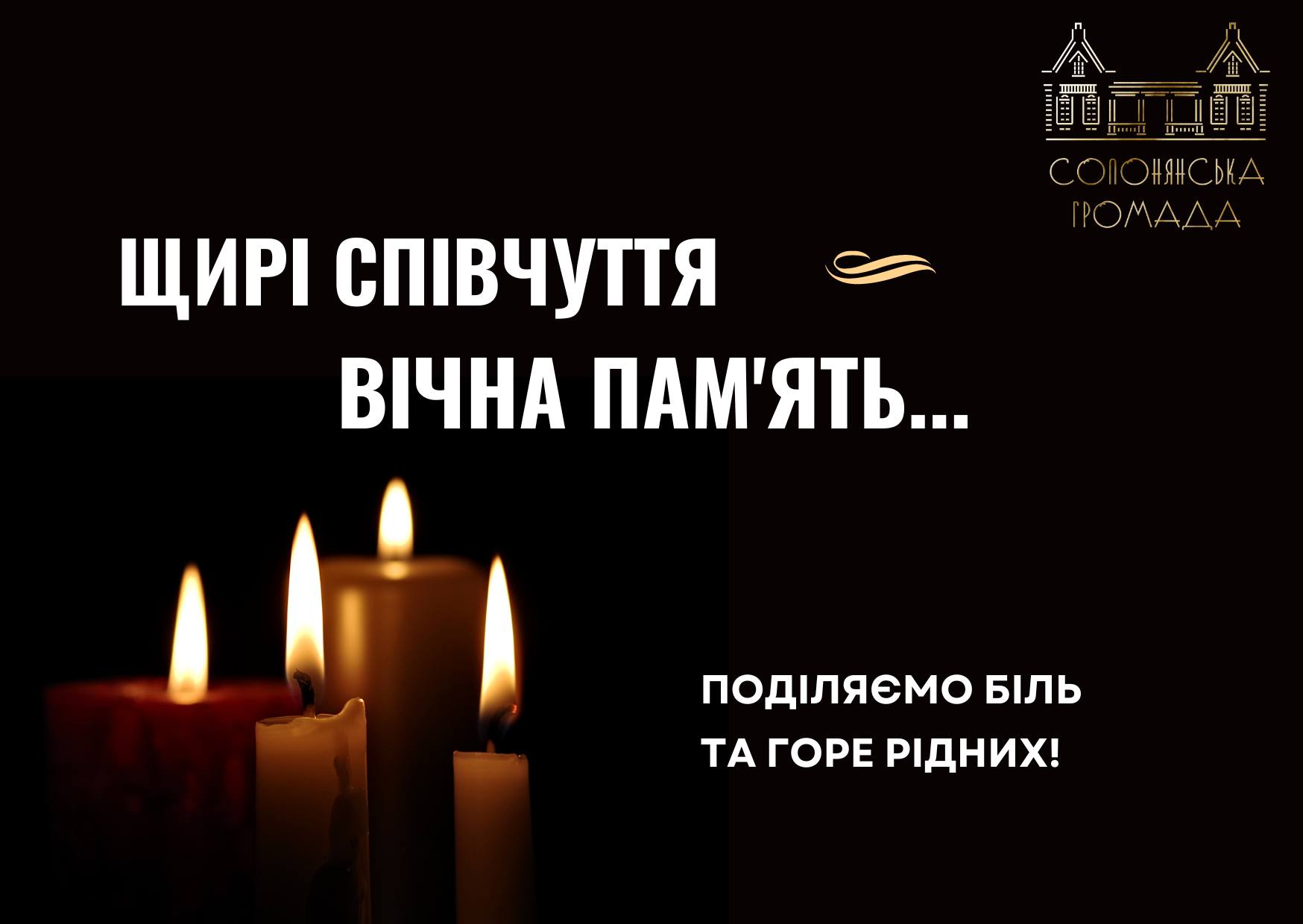 Колектив Солонянської селищної ради з глибоким сумом висловлює щирі співчуття колезі — головному спеціалісту відділу соціального захисту населення Вікторії Бровкіній — з приводу тяжкої втрати: смерті її чоловіка, Бровкіна Вячеслава Юрійовича.