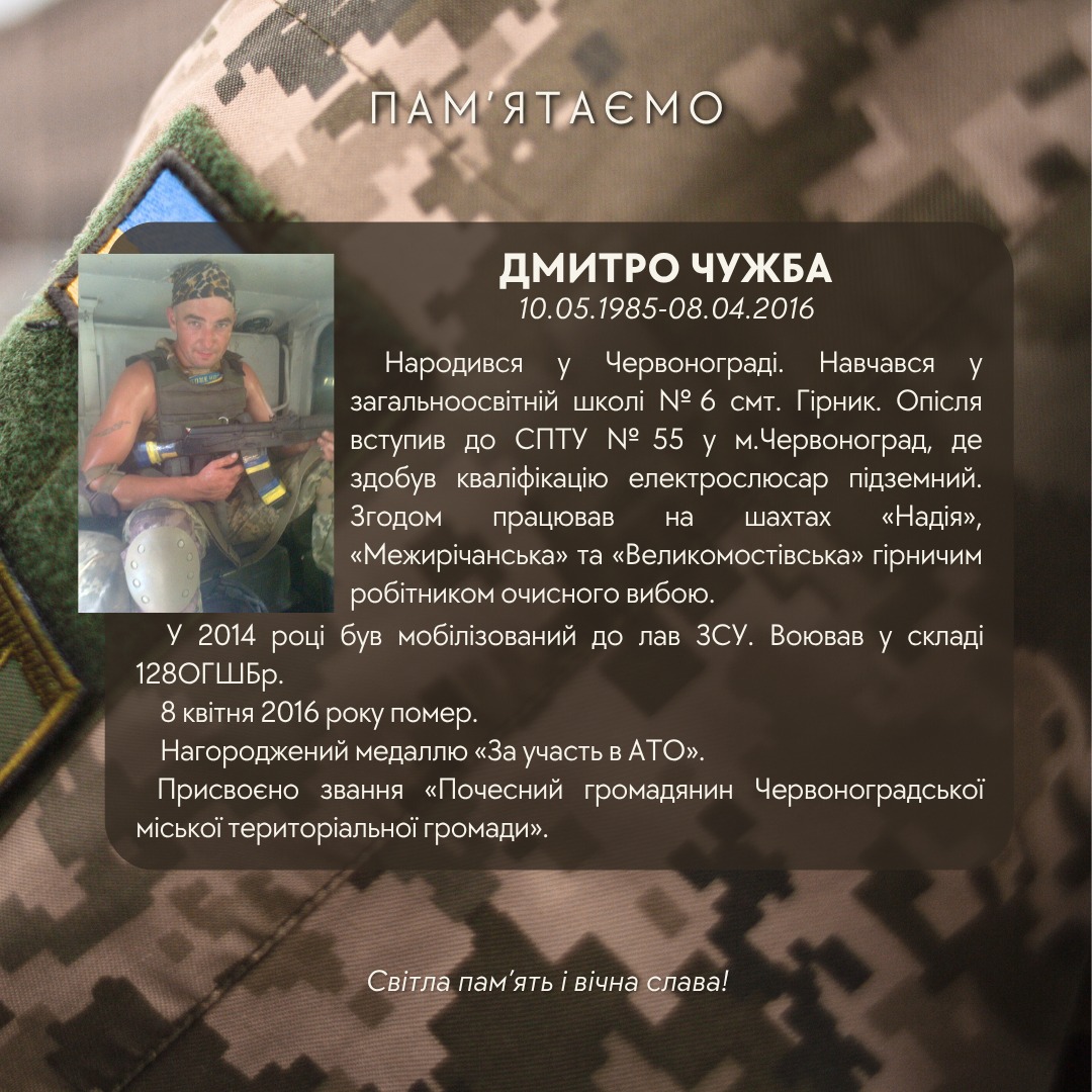 Сьогодні, в цю скорботну мить, схиляємо голову перед Героєм Дмитром Чужбою.