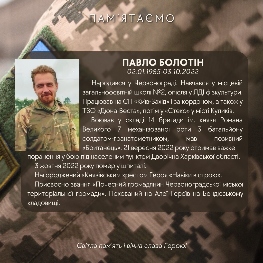 Вічна пам’ять і слава Захиснику України, Павлу Болотіну!