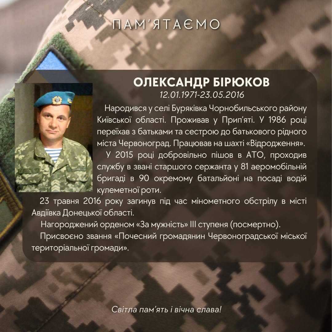Сьогодні, в цю скорботну мить, схиляємо голову перед Героєм Олександром Бірюковим.