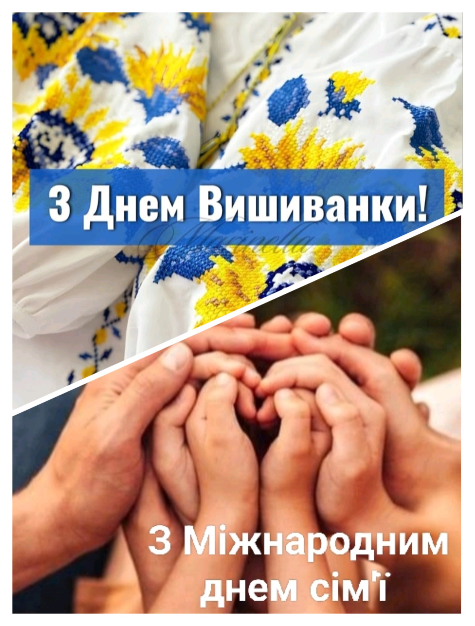 З Днем сім’ї та з Днем вишиванки, дорога громадо! Нехай ці свята принесуть вам радість, надію та віру у світле майбутнє. Носімо вишиванки з гордістю, пам’ятаючи про наше коріння та нашу історію.