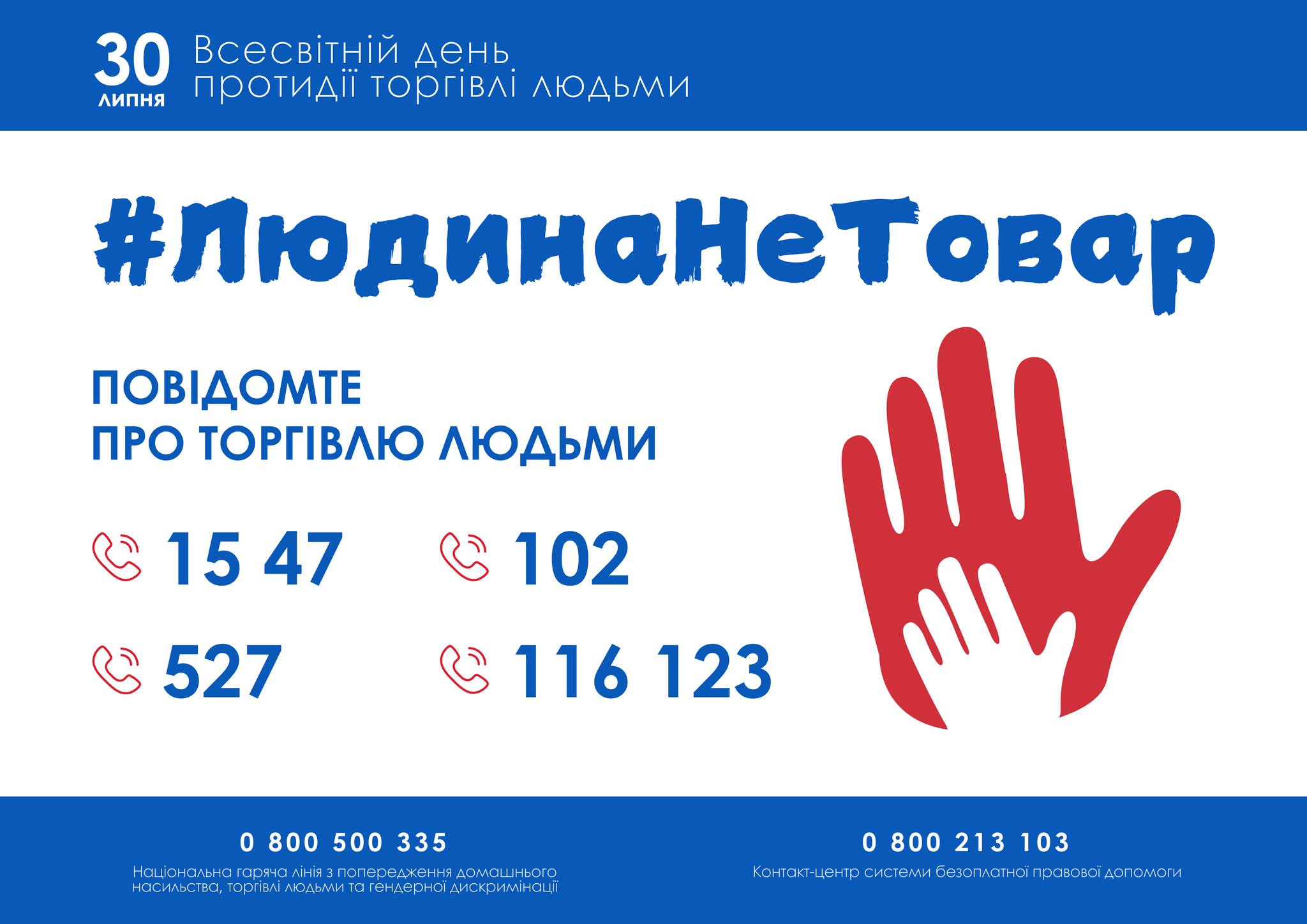 Щороку 30 липня світ відзначає Всесвітній день протидії торгівлі людьми. Цей день є нагадуванням про мільйони людей, які страждають від сучасного рабства. Торгівля людьми — це злочин, який полягає у вербуванні, переміщенні або утриманні осіб через примус, обман чи шахрайство з метою отримання прибутку. Вона охоплює трудову та сексуальну експлуатацію, примус до жебракування, участь у злочинній діяльності, вилучення органів без згоди, а також усиновлення заради фінансової вигоди. Особливо вразливими після повномасштабного вторгнення стали тисячі українців, які втратили житло, роботу, документи та близьких. Група ризику включає тих, хто шукає роботу за кордоном, жінок, дітей, біженців, внутрішньо переміщених осіб та людей у складних життєвих обставинах. Для самозахисту критично важливо ретельно перевіряти роботодавців, не передавати свої документи, інформувати близьких про своє місцезнаходження та уникати сумнівних пропозицій. Якщо ви стали жертвою або свідком торгівлі людьми — не мовчіть! Звернення по допомогу є першим кроком до безпеки та відновлення справедливості. Куди звернутися: