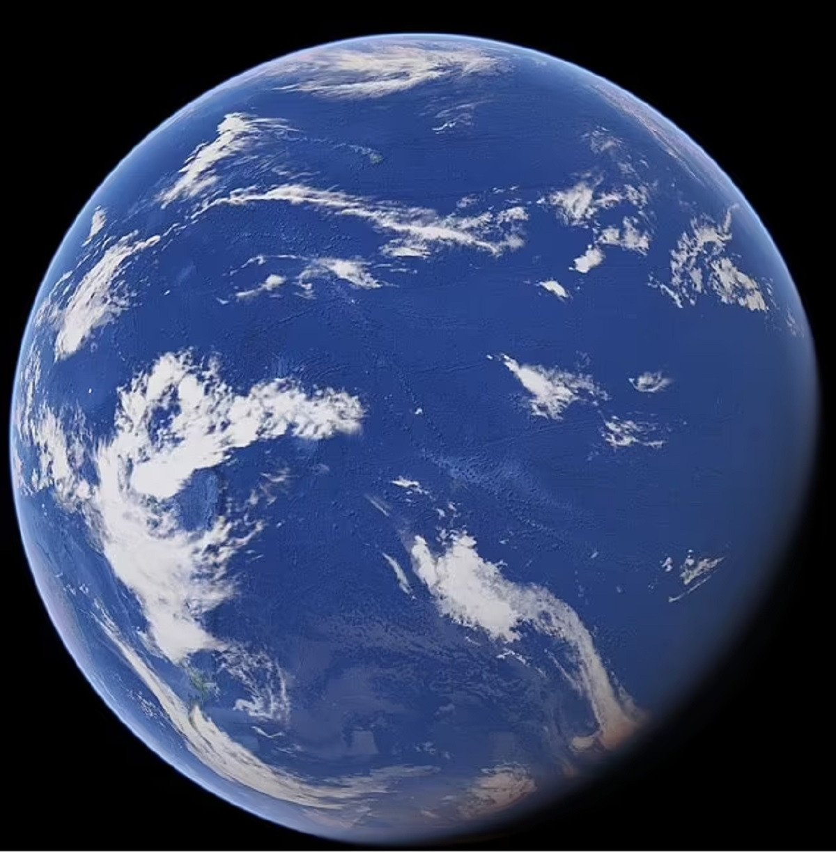Тихий океан настільки великий, що міг би вмістити всі континенти. На фото Землі видно лише невеликі частини суші – зелені ділянки Нової Зеландії та частину Антарктиди.