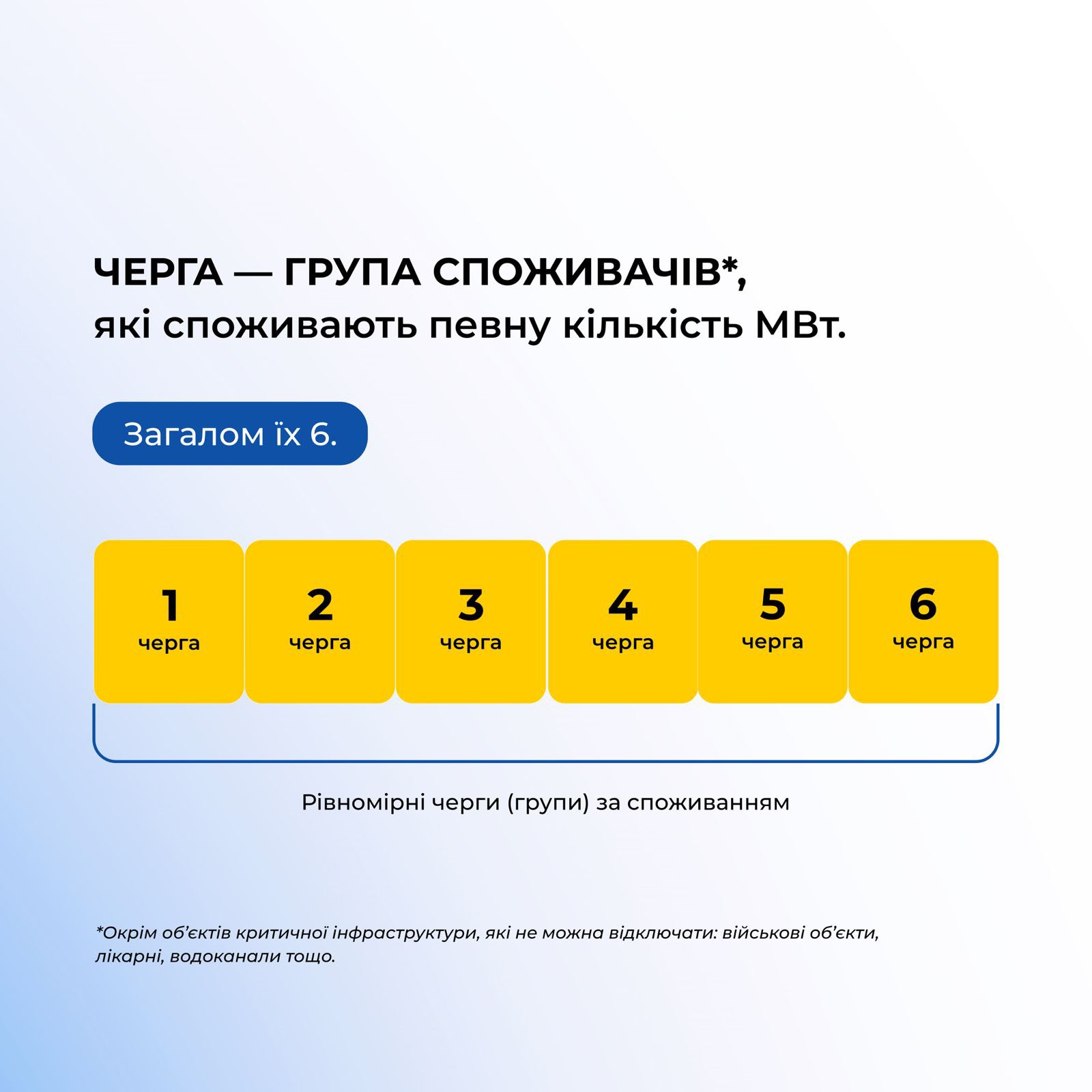 - Споживачі, що належать до переліку об’єктів критичної інфраструктури, не залучаються до черг ГПВ.