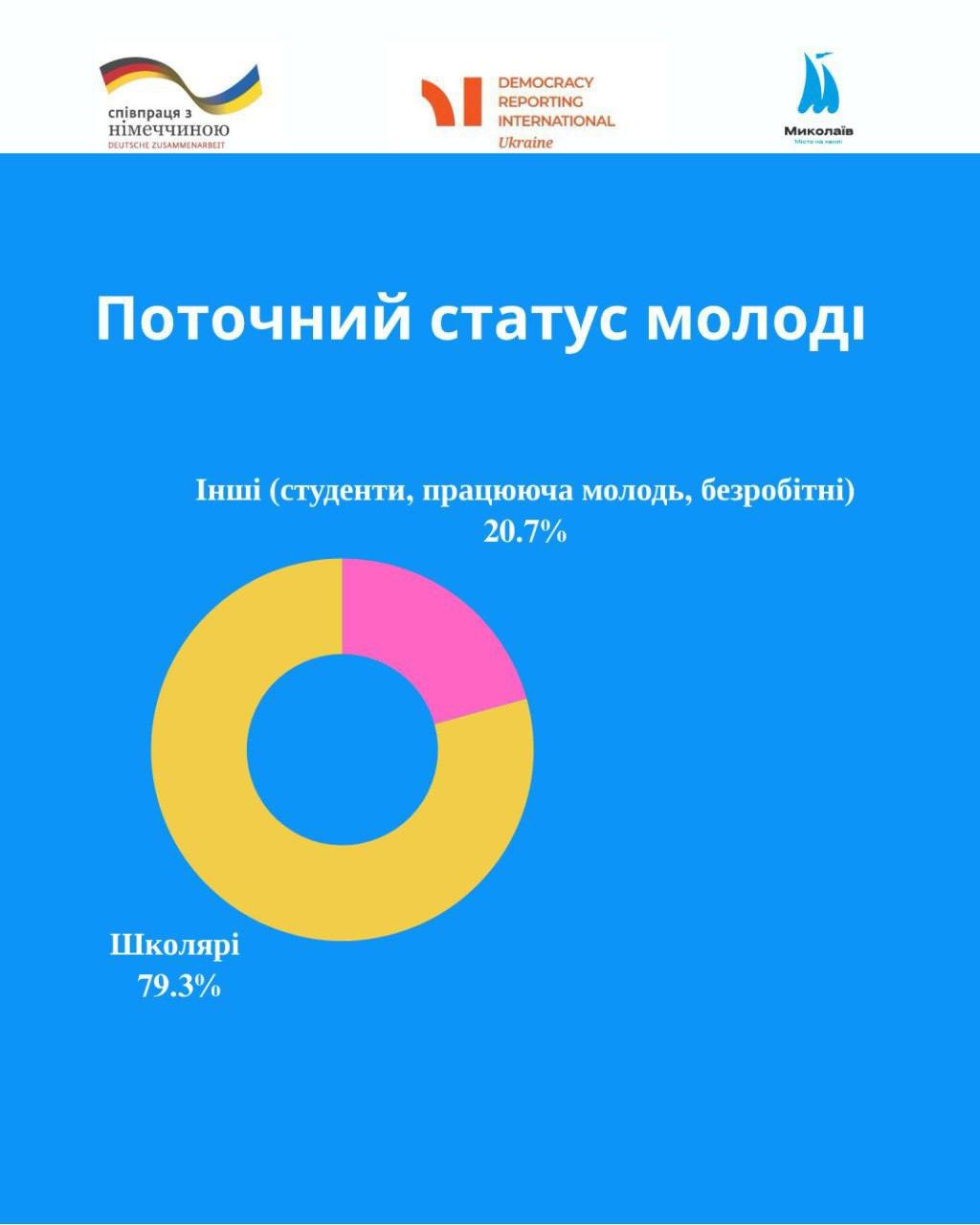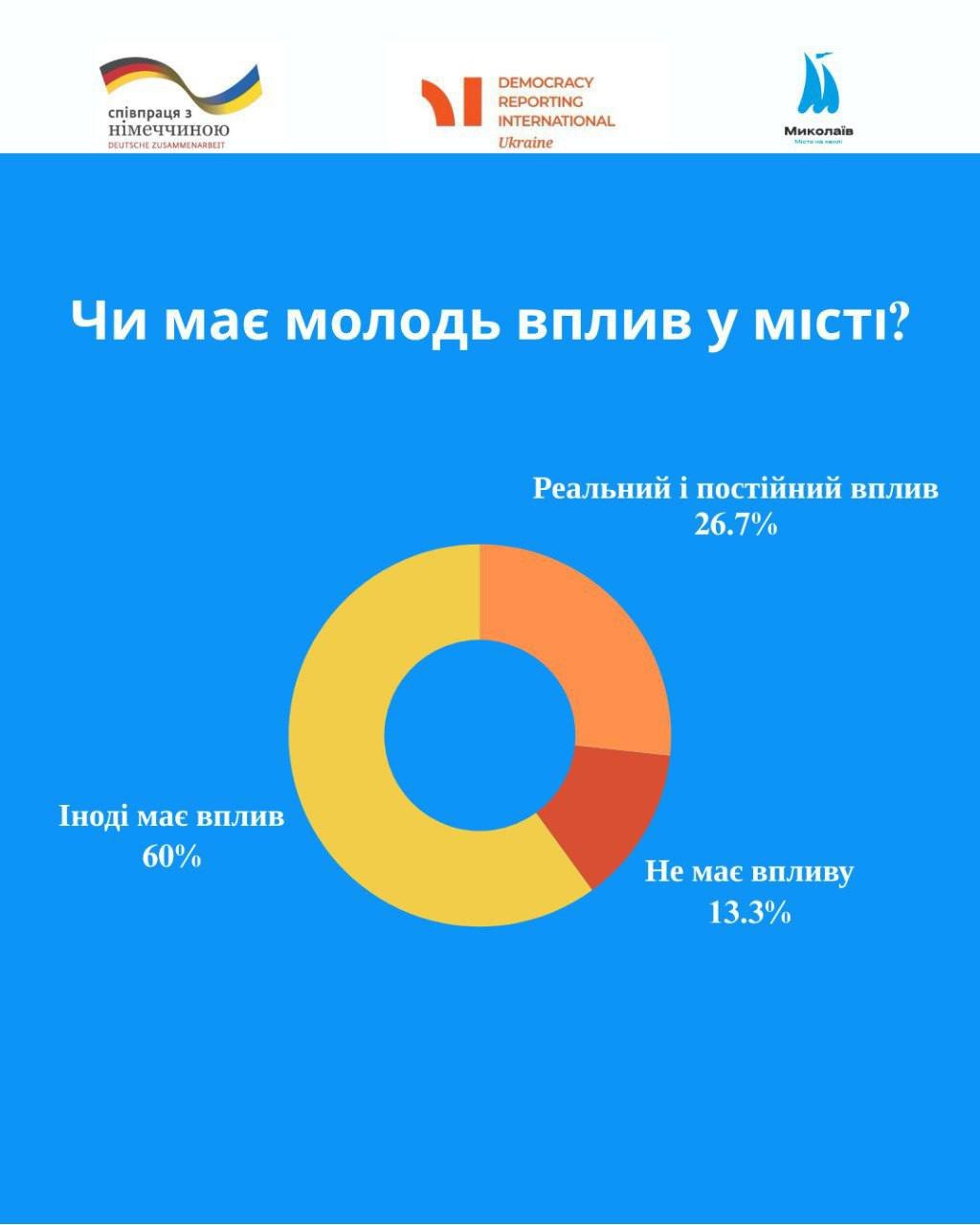 Стажери Миколаївського міського молодіжного простору, за підтримки Democracy Reporting International, провели ґрунтовне опитування серед 247 молодих людей з різних районів Миколаєва. Метою дослідження було виявити ключові фактори, що сприяють активному життю молоді в громаді та стимулюють їхню участь у розвитку міста.