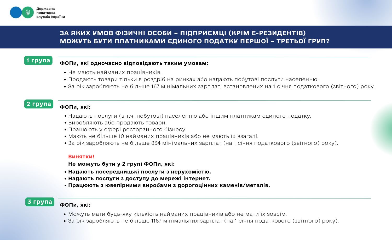 Розглянемо детальніше, на які групи поділяються платники єдиного податку та які умови перебування на кожній з них: