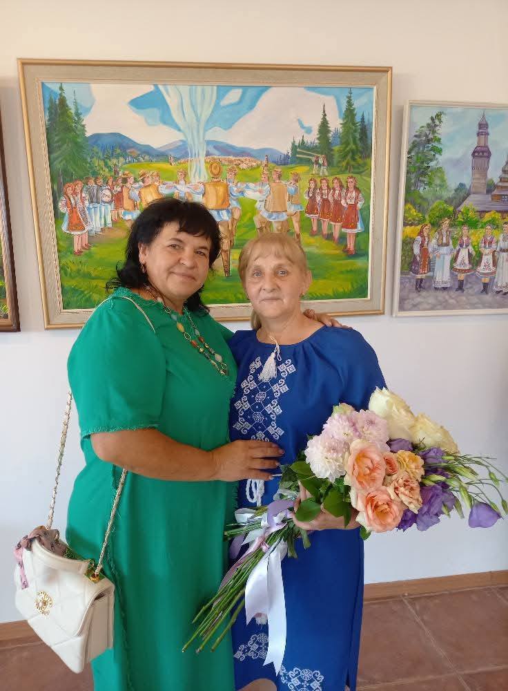 Підтримати землячку завітали начальниця відділу освіти, охорони здоров’я, культури, сім’ї, молоді та спорту Іршавської міської ради Єлизавета Яцканич, провідна методистка Іршавського міського будинку культури Іршавської міської ради, заслужена працівниця культури України Оксана Сідор та Олеся Микита – директорка Ільницької дитячої школи мистецтв, у якій майже 30 років викладає художниця.