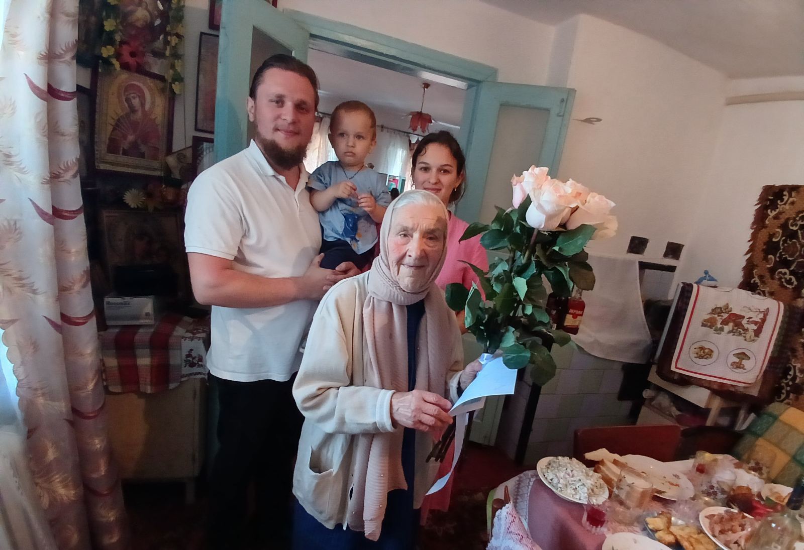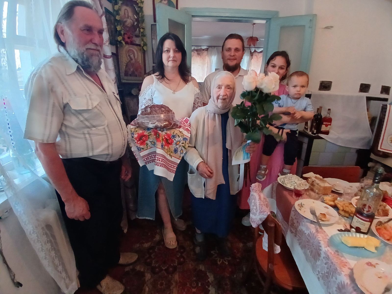 Після втрати чоловіка Євдокія Кононівна проживає одна, але не почувається самотньою. Турботу про неї проявляють прихожани місцевої церкви, які допомагають їй по господарству. У день 90-річного ювілею вони розділили радість свята, накривши святковий стіл, спекли іменинний торт та сказали багато теплих слів. Святкування 90-річного ювілею пройшло в теплій атмосфері.