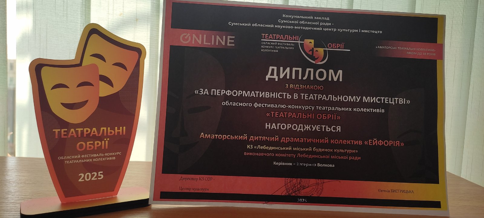 Дитячий драматичний колектив «Ейфорія» з Лебедина знову підкорює мистецькі вершини! Юні таланти гідно представили свою громаду на обласному фестивалі-конкурсі театральних колективів «Театральні обрії» в Сумах. Участь у фестивалі стала важливою подією для розвитку творчих здібностей дітей та прославила Лебедин на обласному рівні.