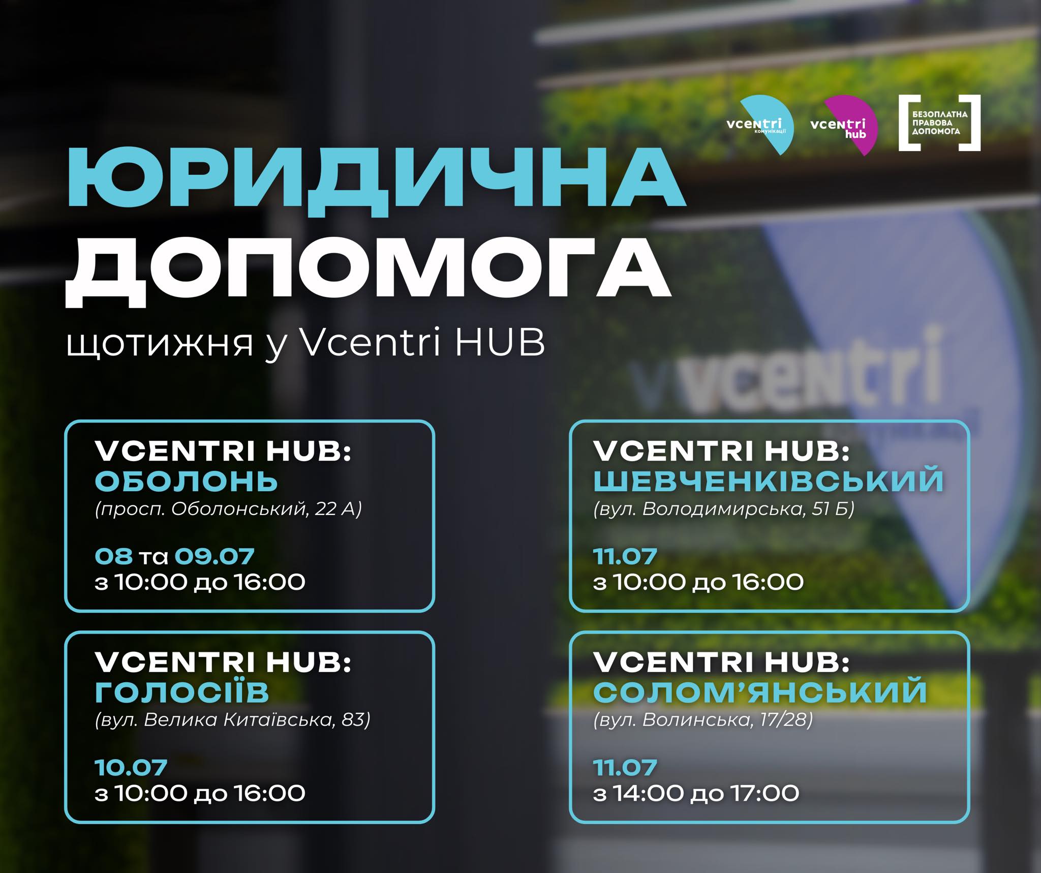 Юридична допомога у Vcentri HUB: Солом‘янський! Щотижня у Vcentri HUB ви можете…