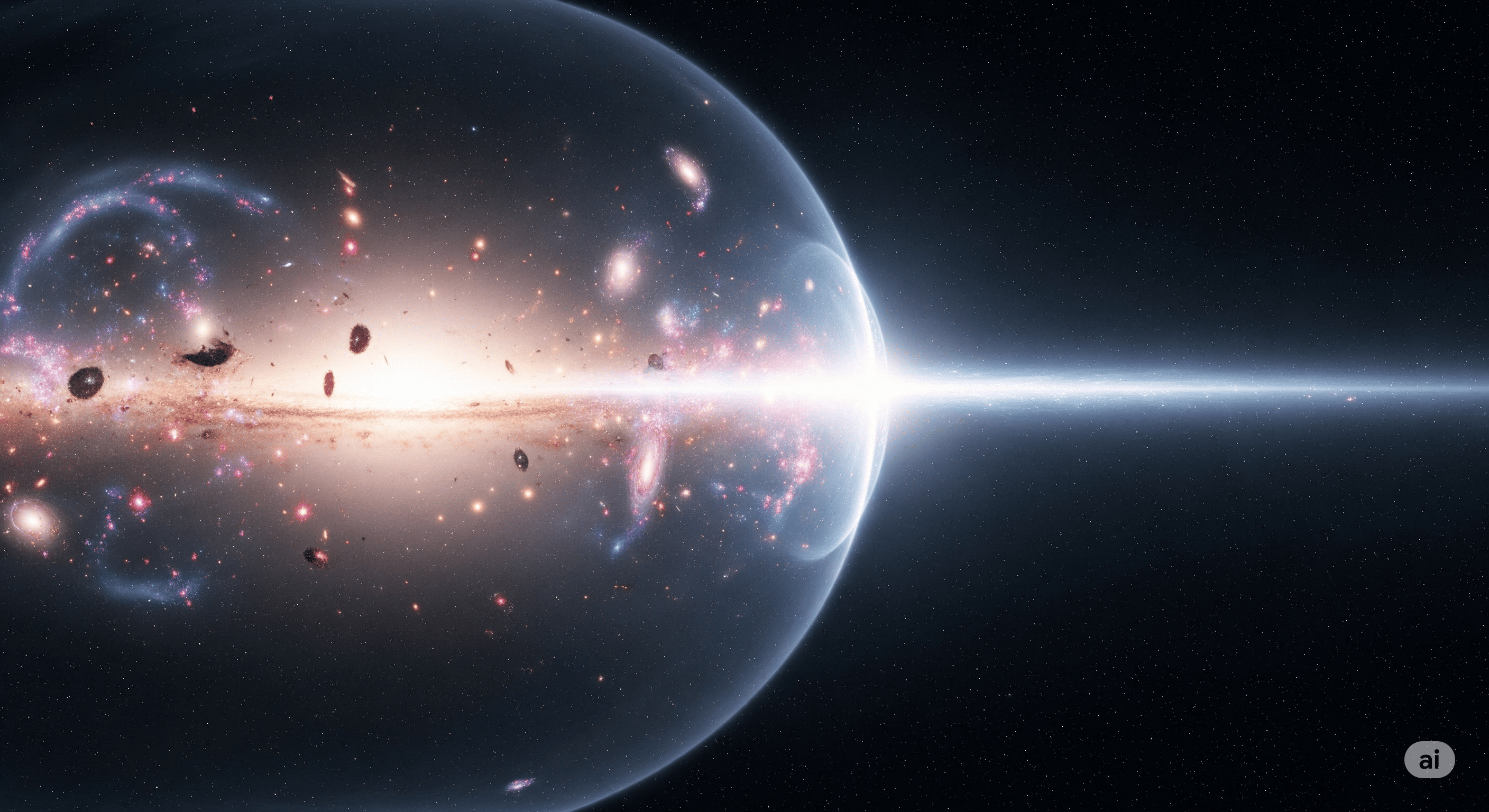 Уявлення ШІ ідеї розпаду хибного вакууму та бульбашки істинного вакууму, що знищує Всесвіт