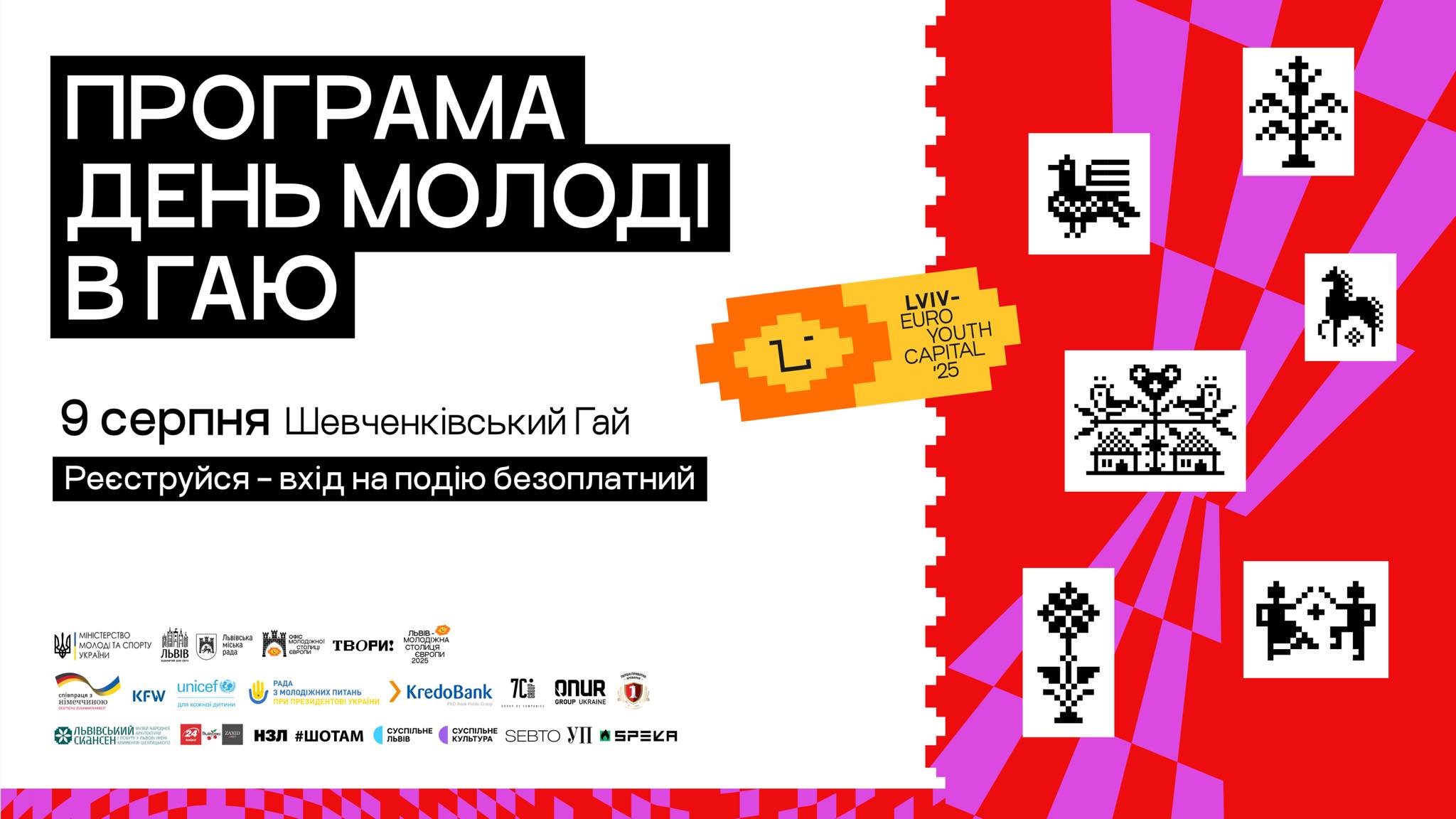 У суботу, 9 серпня, з 16:00 до 21:30 у Шевченківському гаю (вул. Чернеча Гора, 1) пройде великий фестиваль до Дня молоді в межах титулу «Молодіжна столиця Європи 2025».