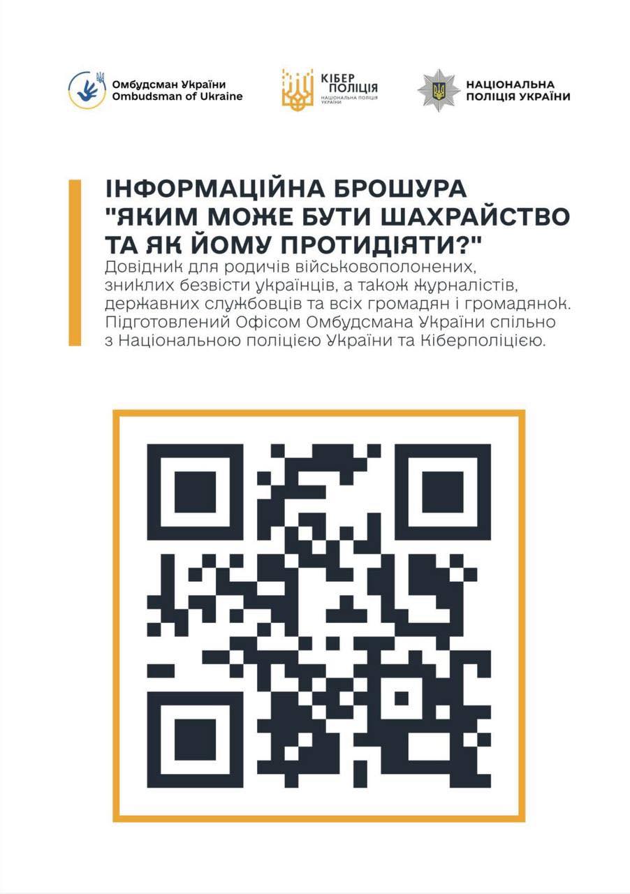 Офіс Омбудсмана України спільно з Національною поліцією України та Кіберполіцією підготували цей інформаційний матеріал, щоб надати корисні поради та рекомендації щодо протидії шахрайству. Пам’ятайте, що обізнаність – це перший крок до захисту від злочинців. Не ставайте жертвою шахрайства!