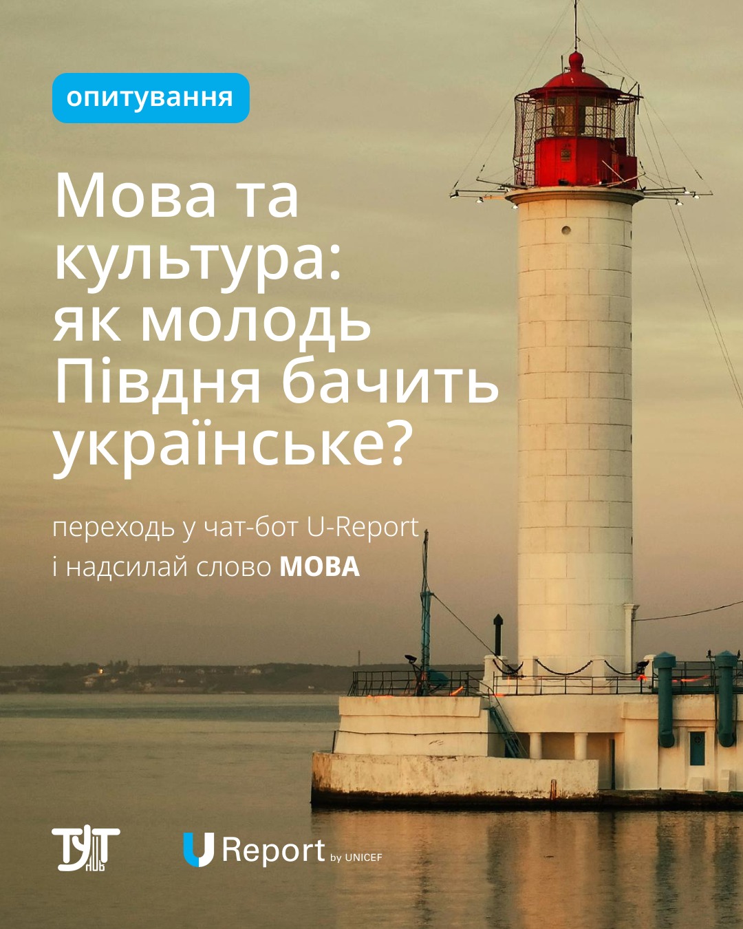 Поділися своїми враженнями в опитуванні, яке громадська організація «ТУТ» спільно з U-Report організовує для молоді Південного регіону. Ваші відповіді стануть основою для створення культурного проєкту в Миколаєві, враховуючи інтереси молоді з Одеської, Миколаївської та Херсонської областей. Цей проєкт має на меті вивчити мовні вподобання молоді, щоб адаптувати культурні події та матеріали для їхнього задоволення та залучення.