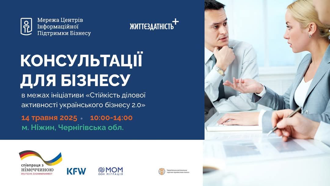 Коли: 14 травня 2025, 10:00-14:00 (офлайн, м. Ніжин, Чернігівська область, площа ім. Франка, 1, будівля виконавчого комітету Ніжинської міської ради, кабінет 83 (Офіс відновлення та розвитку).