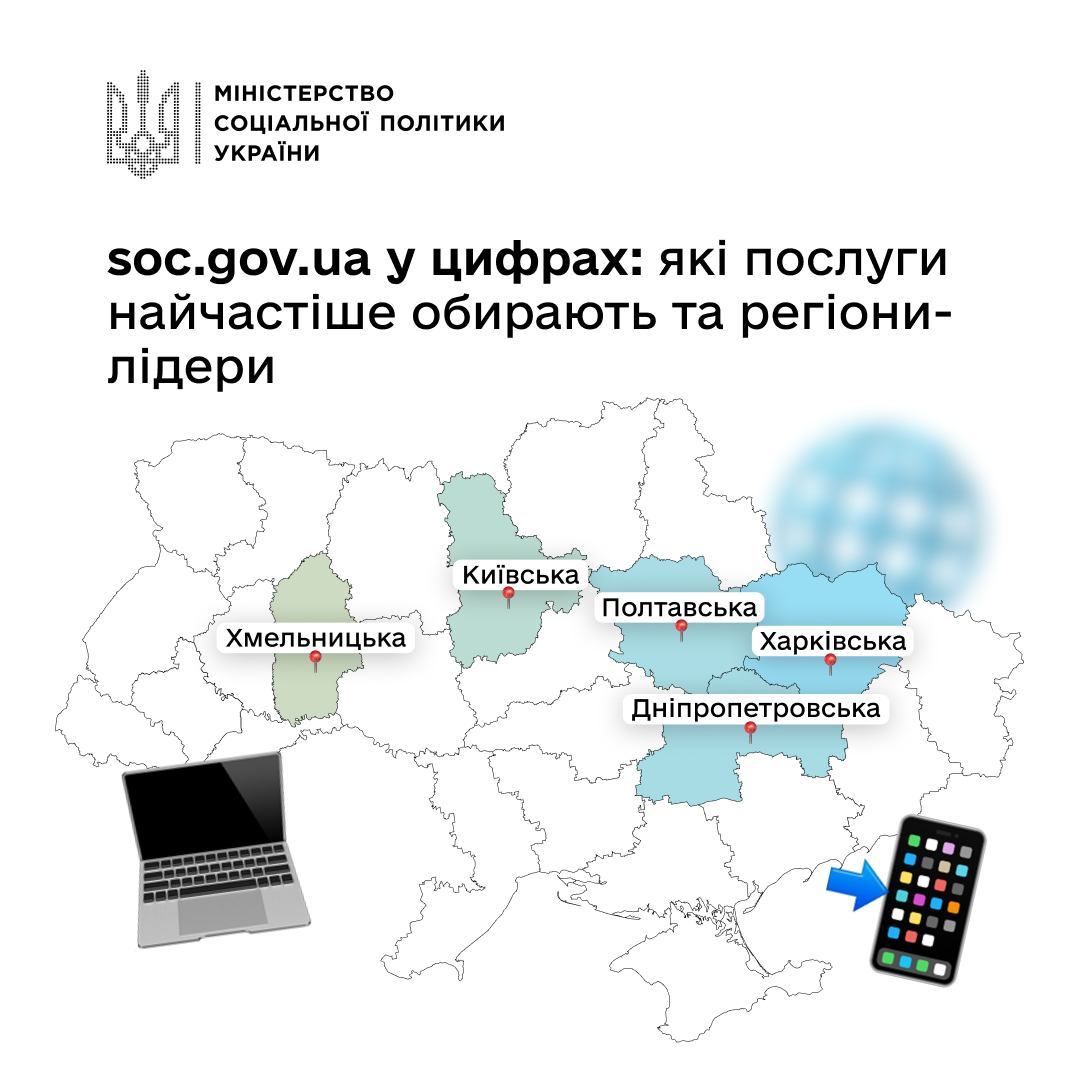 Де найактивніше користуються можливістю подання онлайн-заяв для надання соціальних послуг — дізнавайтеся у картках ⬇️