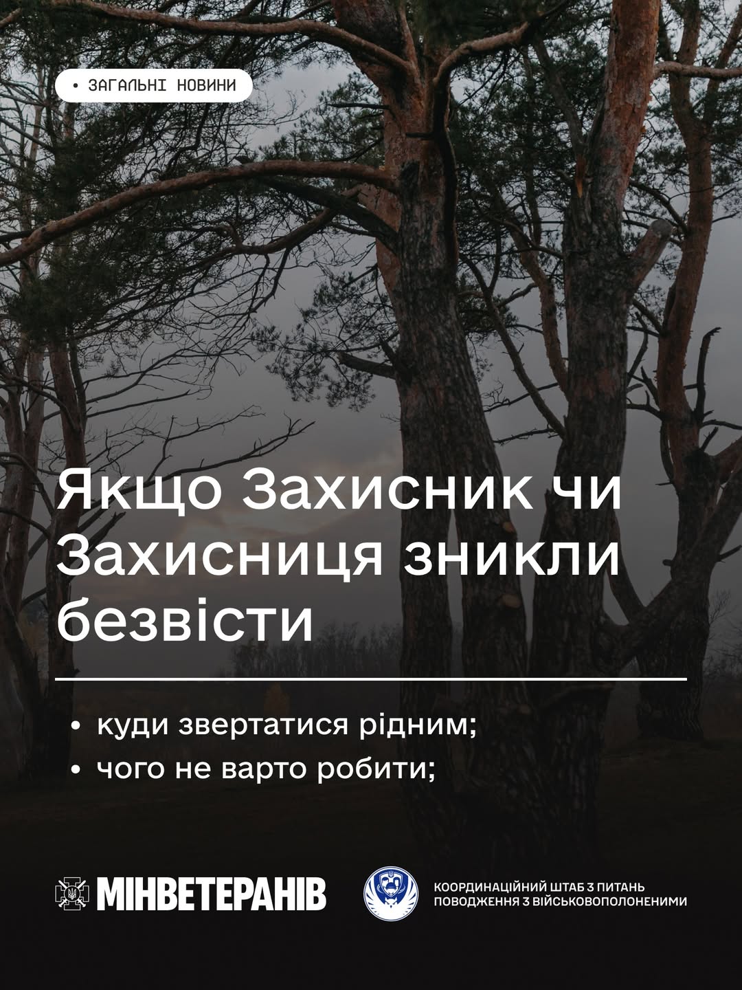 Після того, як Територіальний центр комплектування та соціальної підтримки (ТЦК та СП) повідомив про зникнення, необхідно виконати наступні кроки: