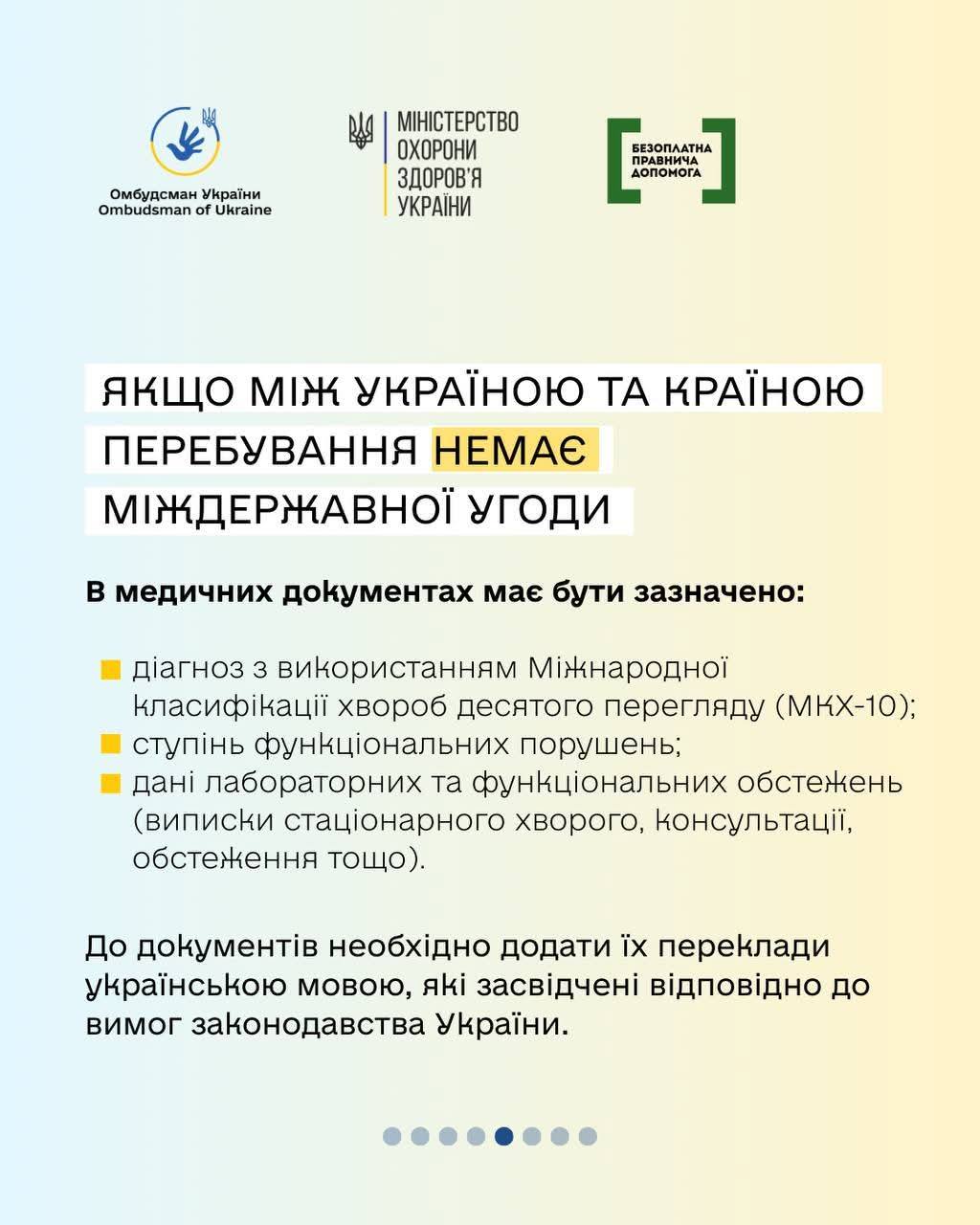 Українці, які легально перебувають за кордоном і потребують встановлення або продовження групи інвалідності, мають можливість зробити це дистанційно. Це значно спрощує процедуру для тих, хто не може приїхати до України для проходження медико-соціальної експертизи (МСЕК).