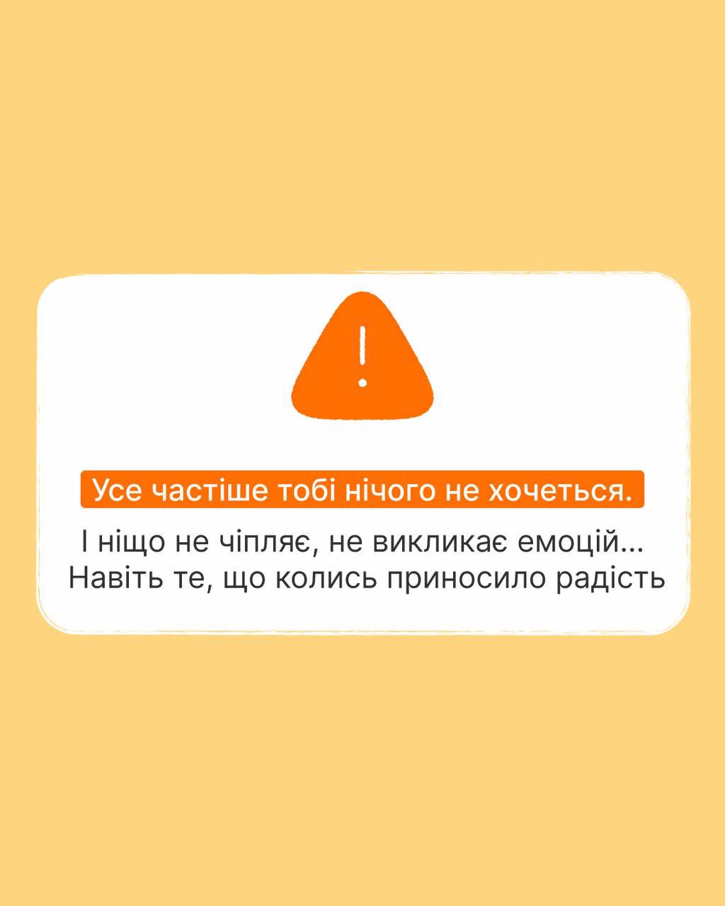 Пам’ятай, ментальне здоров’я – це важлива складова загального благополуччя. Якщо відчуваєш тривогу, втому або інші негативні симптоми, не соромся звертатися за допомогою. Існує безліч ресурсів та професіоналів, готових надати підтримку. Піклування про своє ментальне здоров’я – це інвестиція в якість твого життя.
