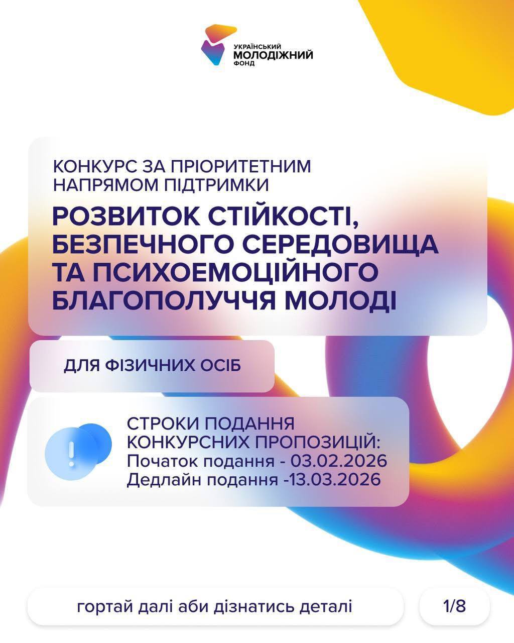Український молодіжний фонд (УМФ) оголошує грантовий конкурс для фізичних осіб, спрямований на посилення стійкості та психоемоційного благополуччя молоді. Якщо ви маєте ідею, яка може позитивно вплинути на життя молодих українців, цей конкурс – ваш шанс втілити її в життя!