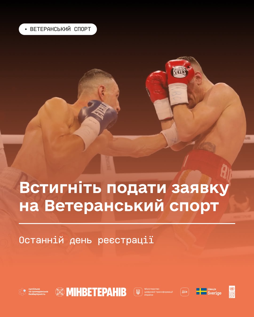 ⏰ Сьогодні — останній день, щоб подати заявку на участь у цій унікальній програмі. Вона дає можливість ветеранам і ветеранкам отримувати 1 500 гривень щокварталу цільово на заняття спортом. Це чудовий шанс відновити фізичну форму та психологічний стан.