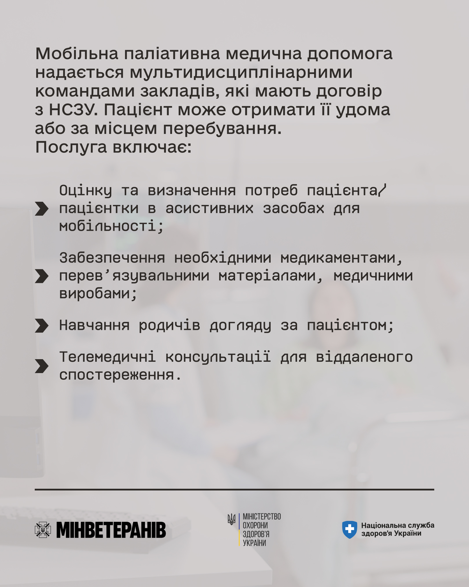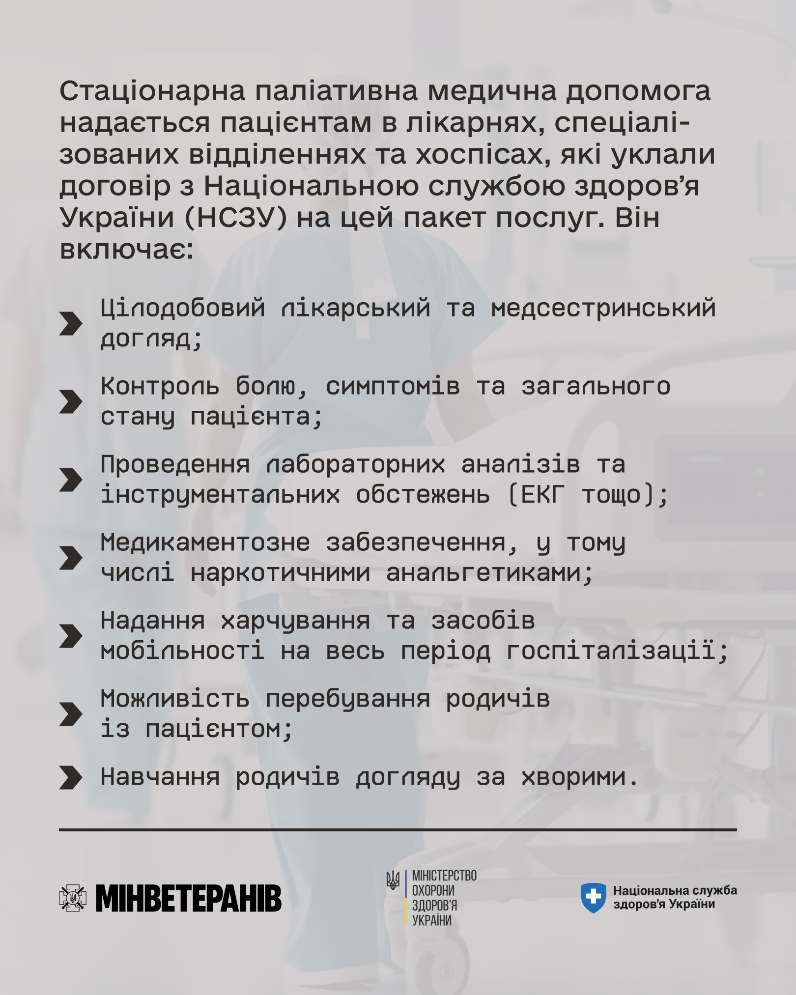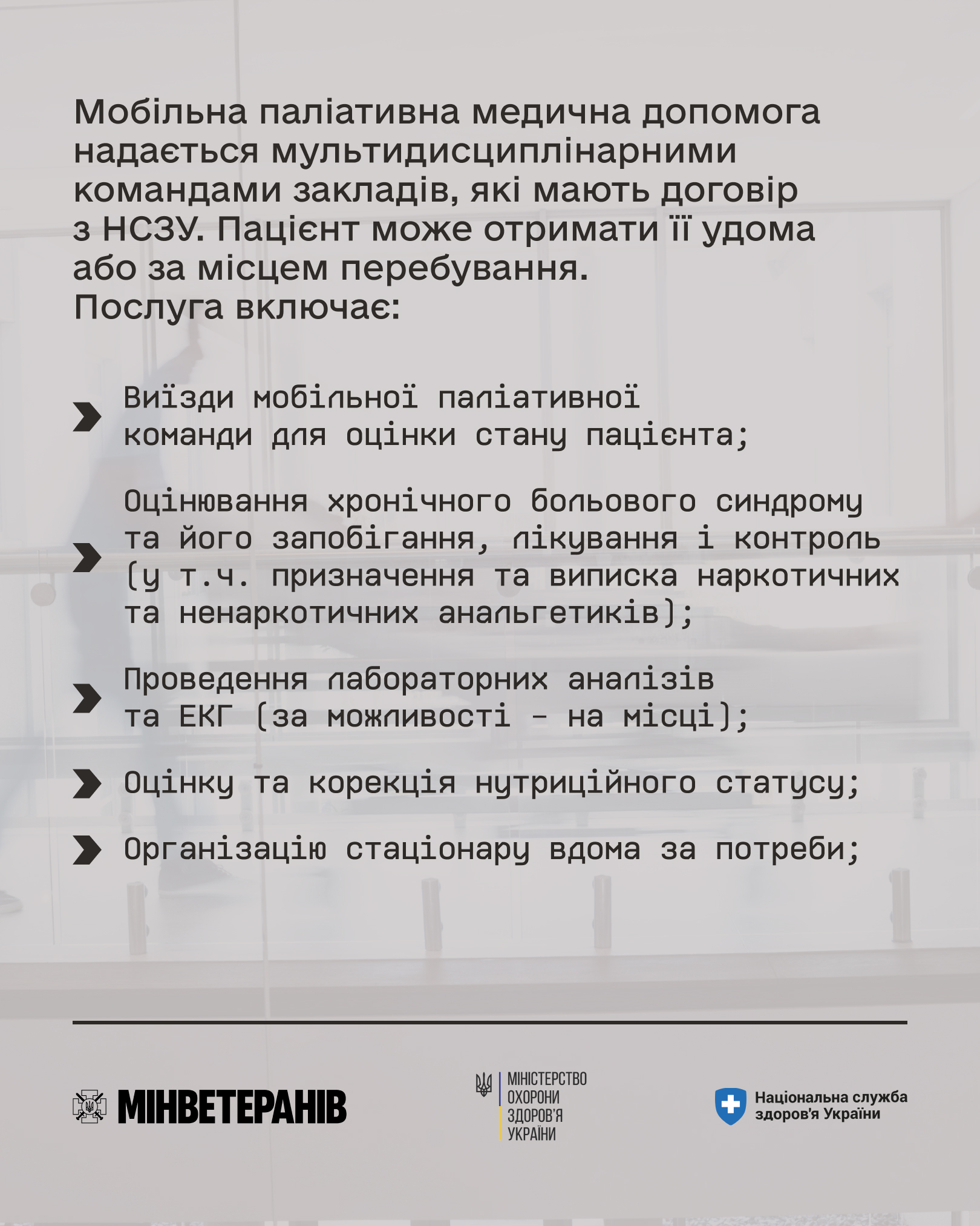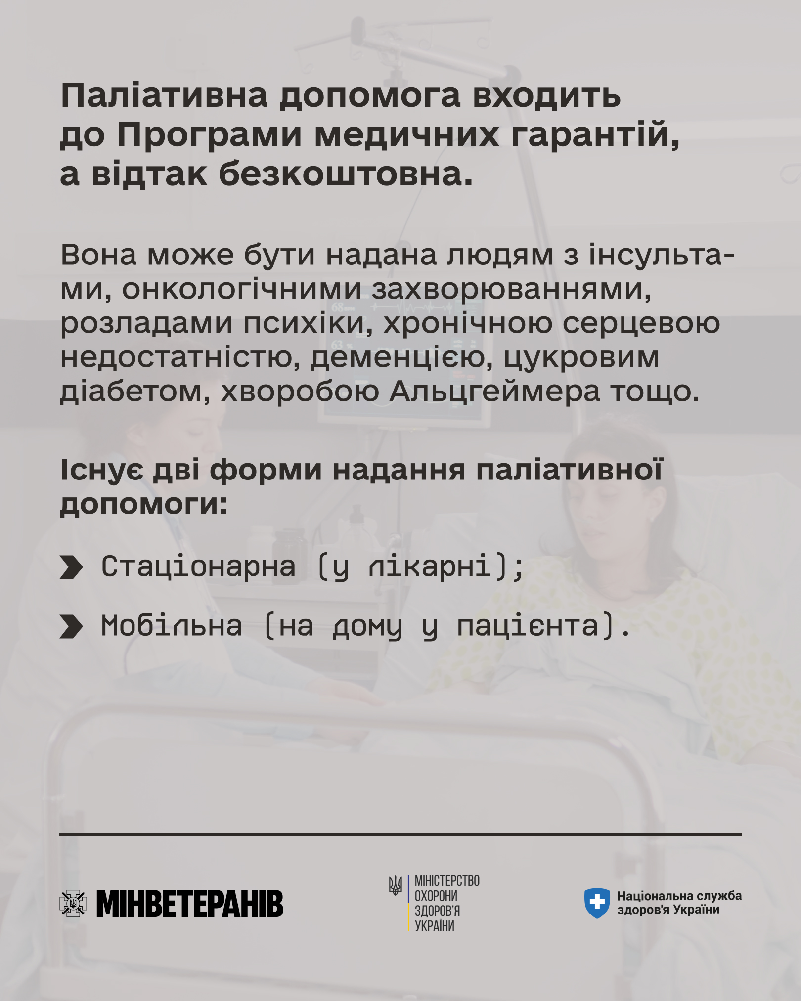 Якщо у ветерана або ветеранки діагностована важка невиліковна хвороба (стан) держава гарантує надання паліативної допомоги