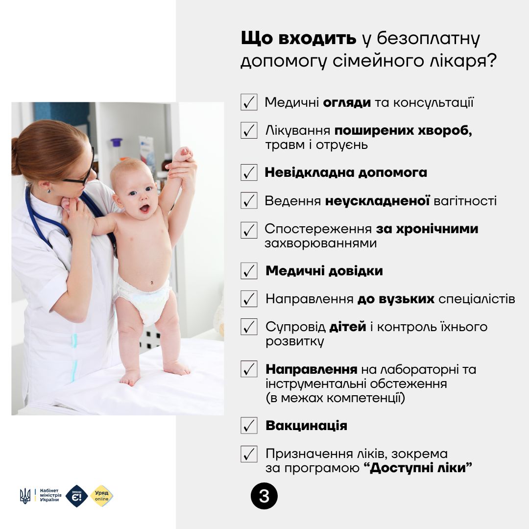 Перелік безоплатних послуг може змінюватися. Рекомендується уточнювати інформацію у вашого сімейного лікаря або на офіційному сайті Національної служби здоров’я України (НСЗУ).
