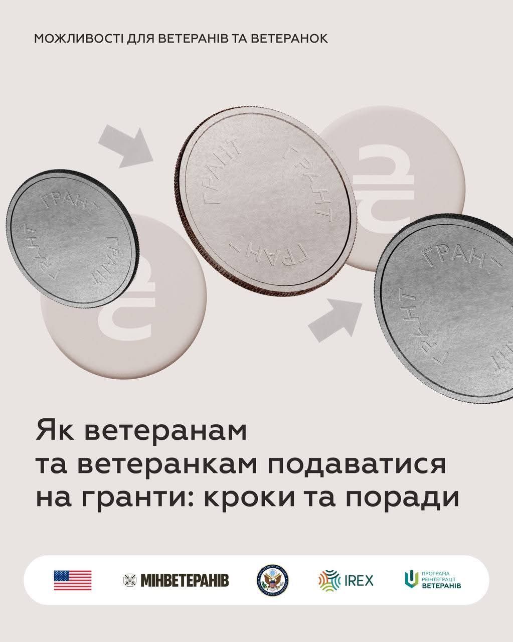 ℹ Інфокампанія «Можливості для ветеранів та ветеранок» реалізується за партнерства Міністерства у справах ветеранів України та Програми реінтеграції ветеранів IREX, яку втілює IREX in Ukraine за підтримки Державного департаменту США U.S. Department of State. Вміст цього матеріалу є виключною відповідальністю IREX та Мінветеранів і не обов’язково відображає офіційну позицію Державного департаменту США.