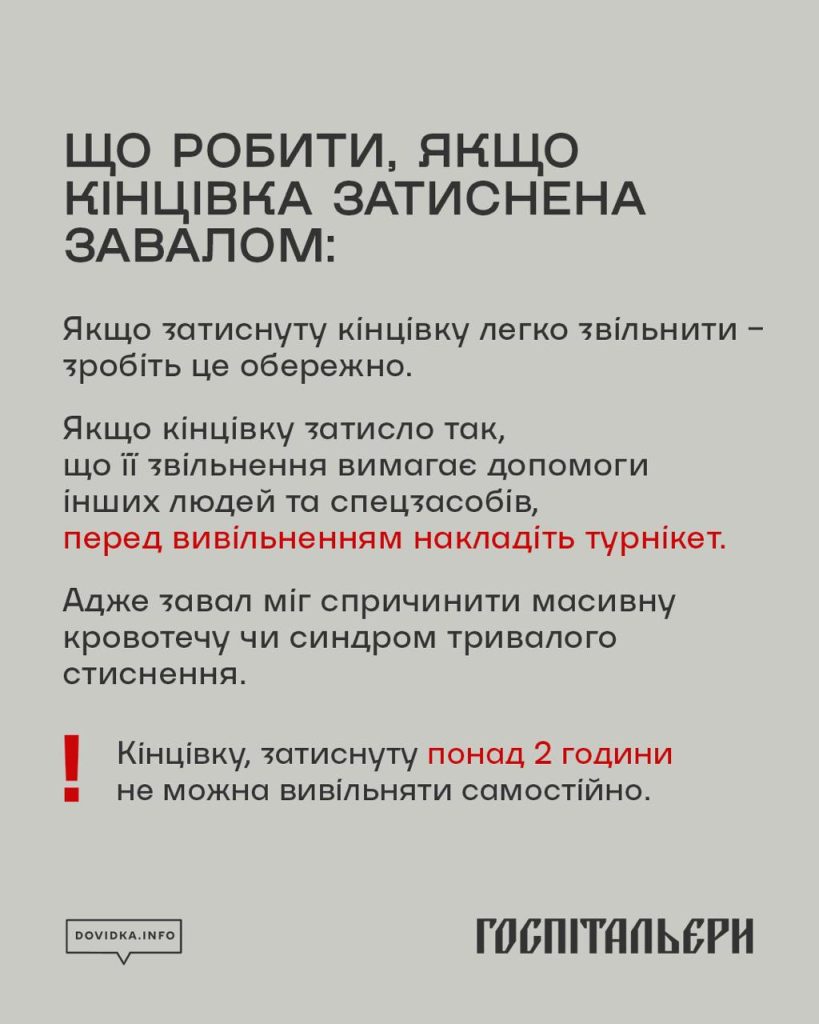 У межах діяльності проєкту Центру стратегічних комунікацій та інформаційної безпеки «Dovidka.Info» було зібрано поради від Державної служби України з надзвичайних ситуацій та медичного батальйону «Госпітальєри», перевірені в умовах реальних рятувальних операцій.