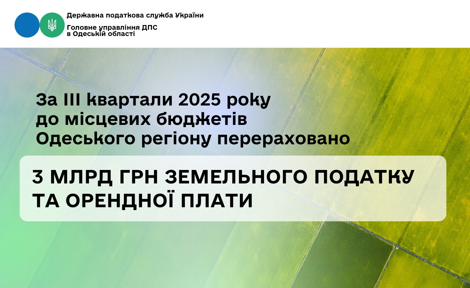 За січень-вересень 2025 року фізичні та юридичні особи Одещини сплатили до місцевих бюджетів значну суму — 3 мільярди гривень земельного податку та орендної плати. Це на 11,1%, або на 295 мільйонів гривень, більше порівняно з аналогічним періодом минулого року. Такі дані навів керівник Головного управління ДПС в Одеській області Юрій Гурський, підкресливши важливість земельного податку для розвитку регіону.