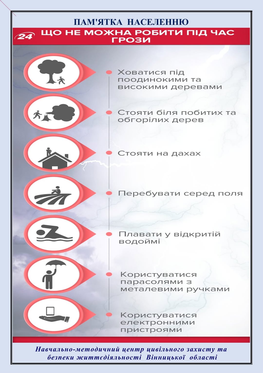 • Утримайтеся від дзвінків по телефону, при великій потребі робіть це швидко одразу ж після чергового грозового розряду.