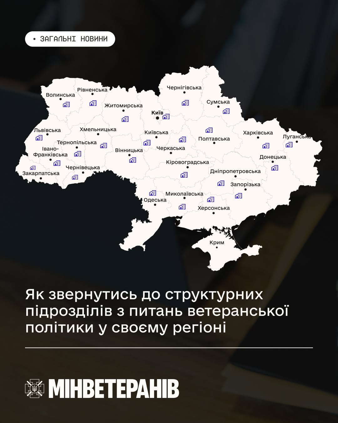 Структурні підрозділи з питань ветеранської політики функціонують при обласних (ОВА) та районних (РВА) військових адміністраціях, а також у територіальних громадах (ОТГ). Вони були створені за ініціативи Міністерства у справах ветеранів України, щоб наблизити підтримку до кожного, хто її потребує.