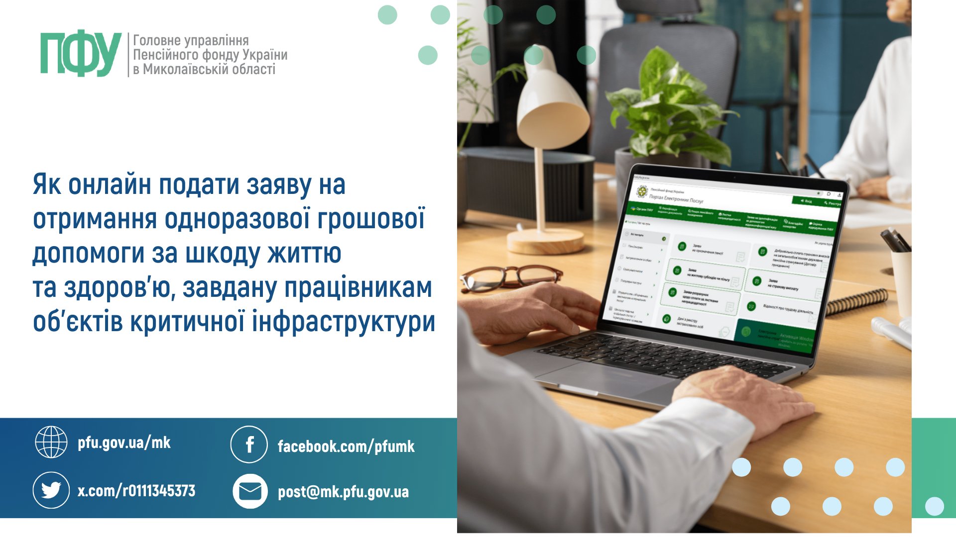 Як онлайн подати заяву на отримання одноразової грошової допомоги за шкоду життю та здоров’ю, завдану працівникам об’єктів критичної інфраструктури.