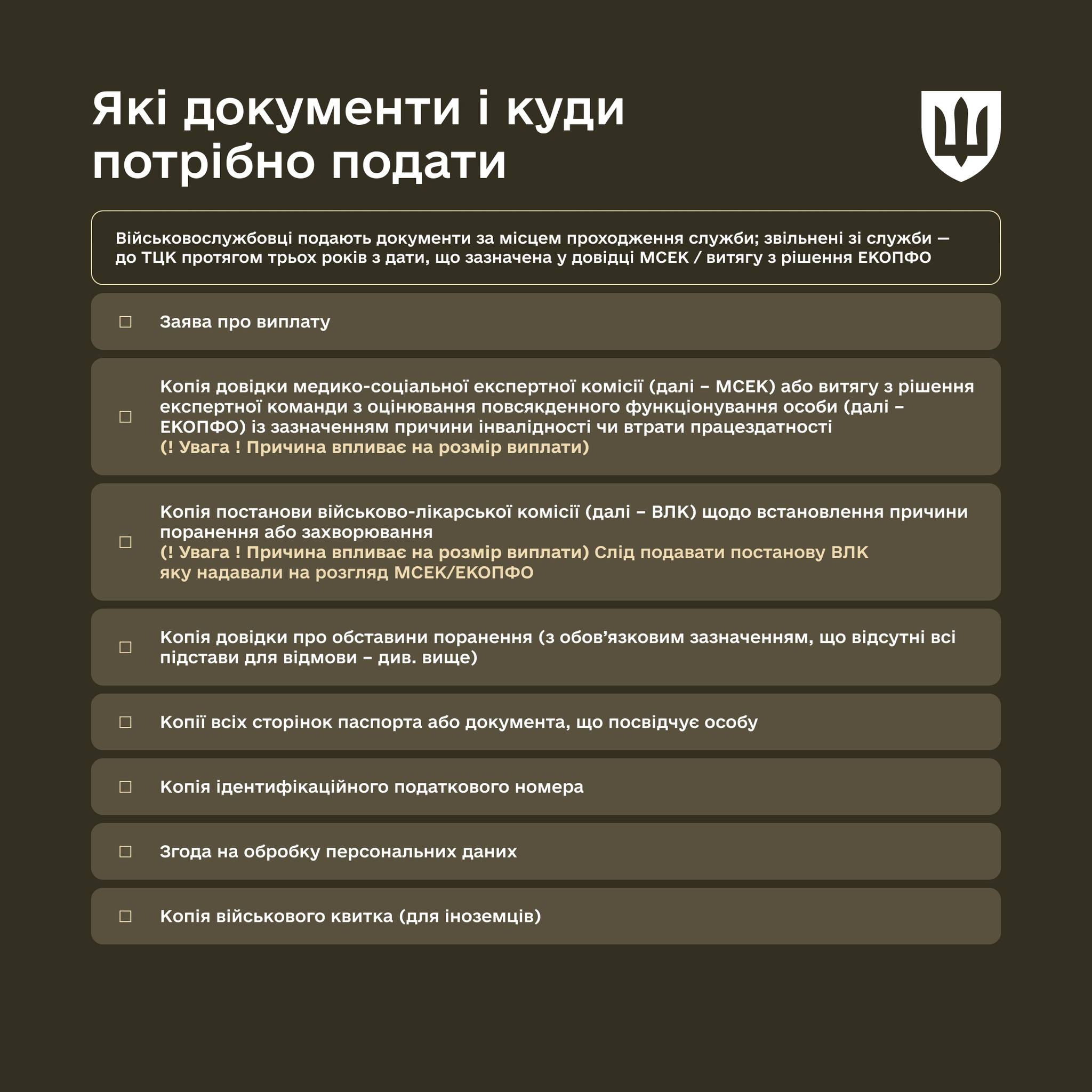 Щоб отримати виплати, необхідно підготувати пакет документів, до якого входять:
