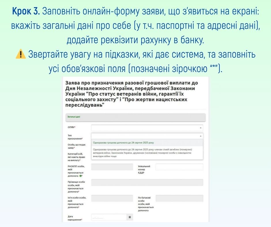 📌 У 2025 році механізм проведення виплати разової грошової допомоги до Дня Незалежності України такий самий, як і торік: більшості отримувачів додатково звертатися за виплатою не потрібно.