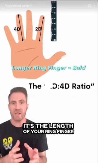Якщо ваш безіменний палець довший за вказівний, ви вшість разів більш схильні до облисіння в майбутньому, каже лікар Скрин відео Dr. Joe, M.D. (@drjoe_md)