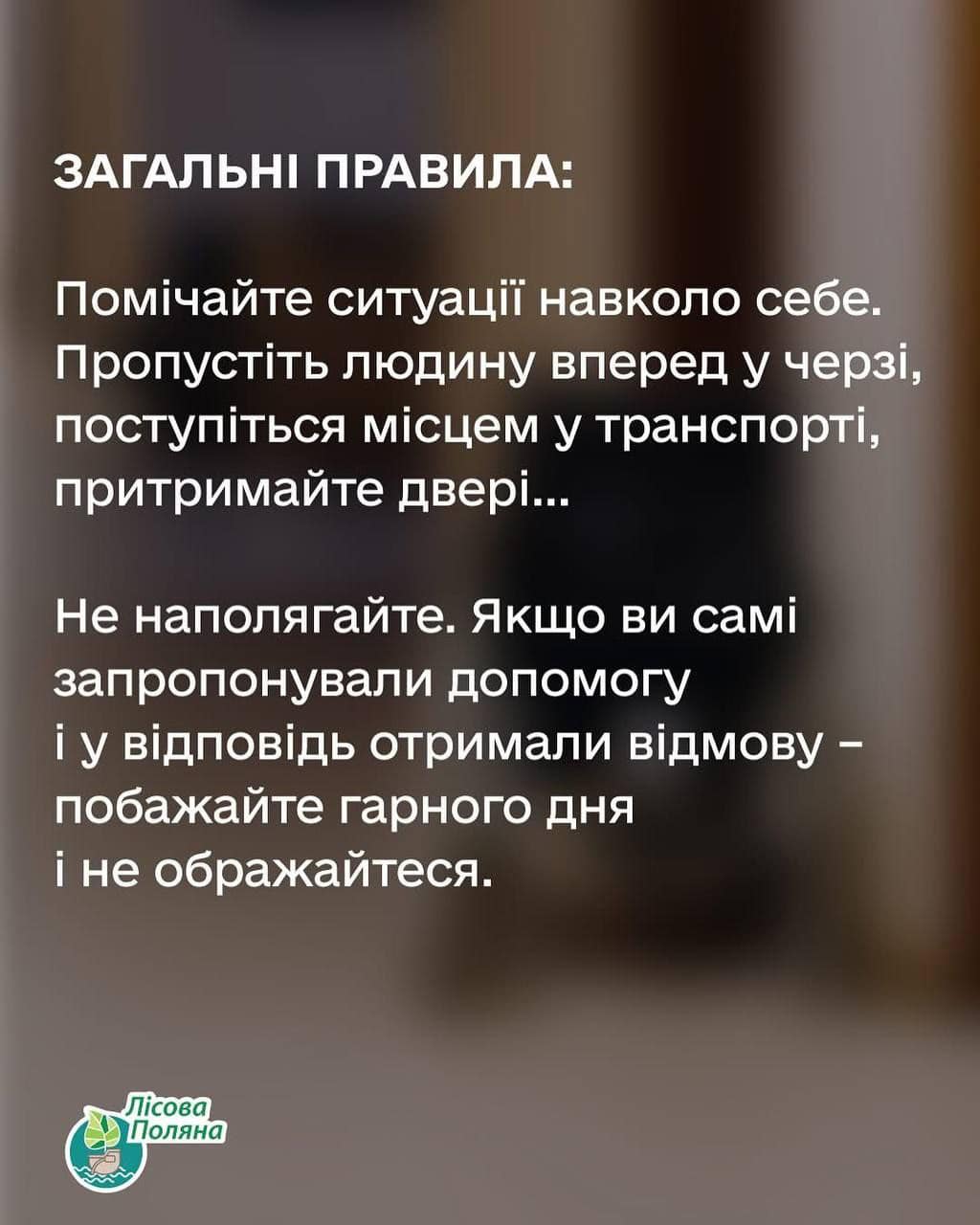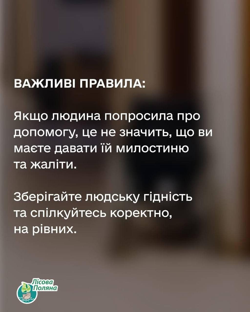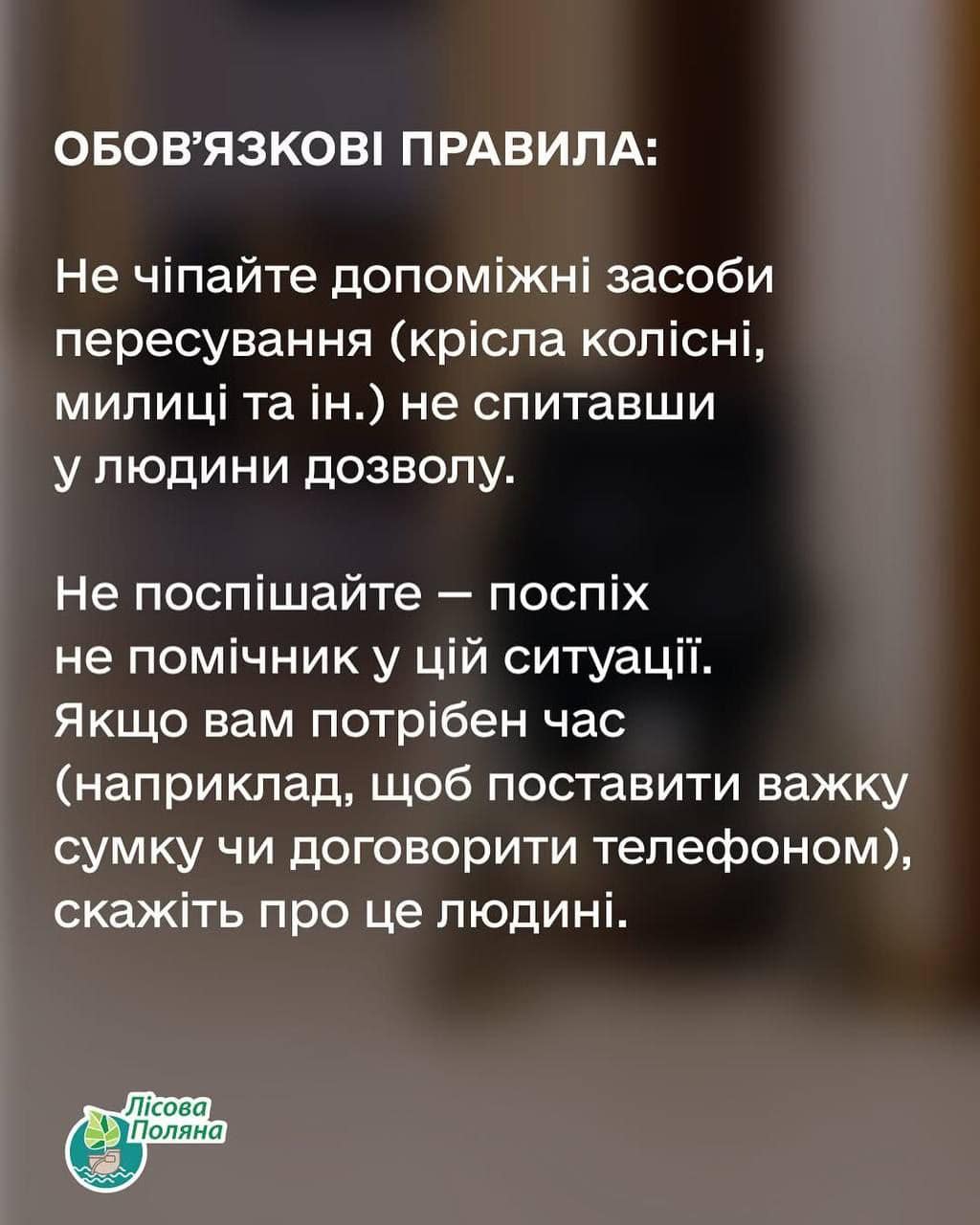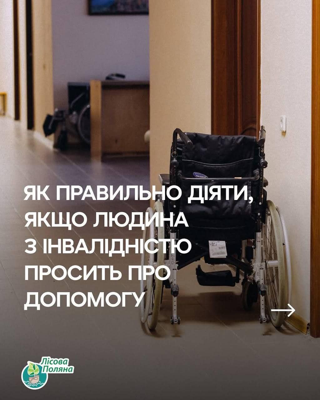 ❓Як правильно діяти, якщо людина з інвалідністю просить про допомогу. Радять фахівці із Центру психічного здоровʼя та реабілітації «Лісова поляна».