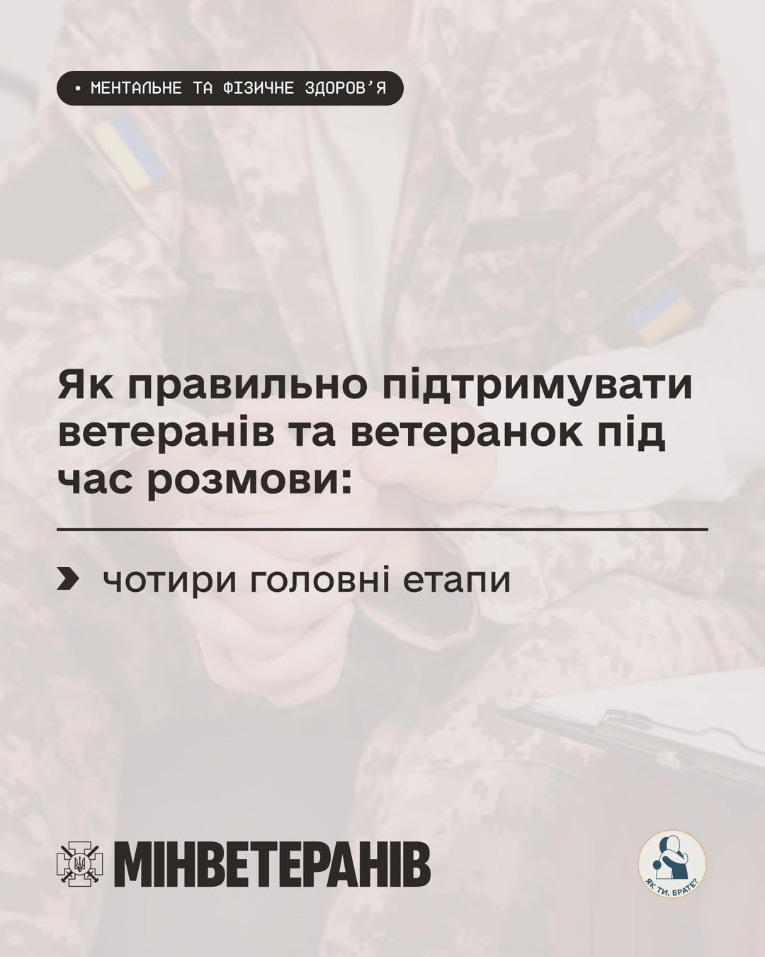 Цього можна досягти, використовуючи деякі рекомендації від БФ “Як ти, брате?”, відповідно до етапів вашої розмови 👇🏻